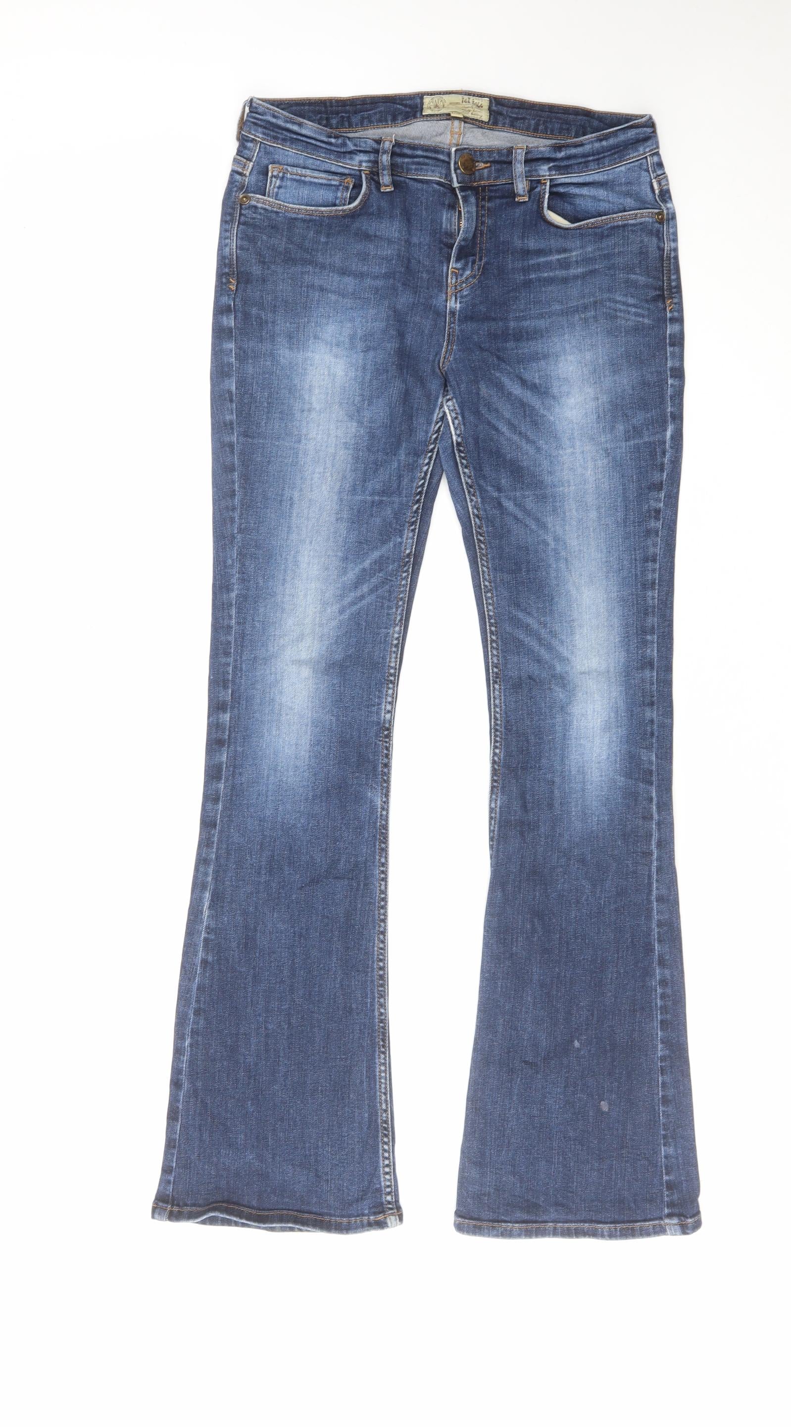 Womens Blue Cotton Flared Jeans Size 10 L31 in Regular Zip