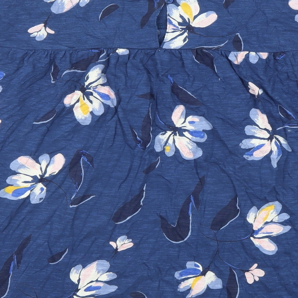 Womens Blue Floral Cotton Basic Blouse Size 14 Round Neck