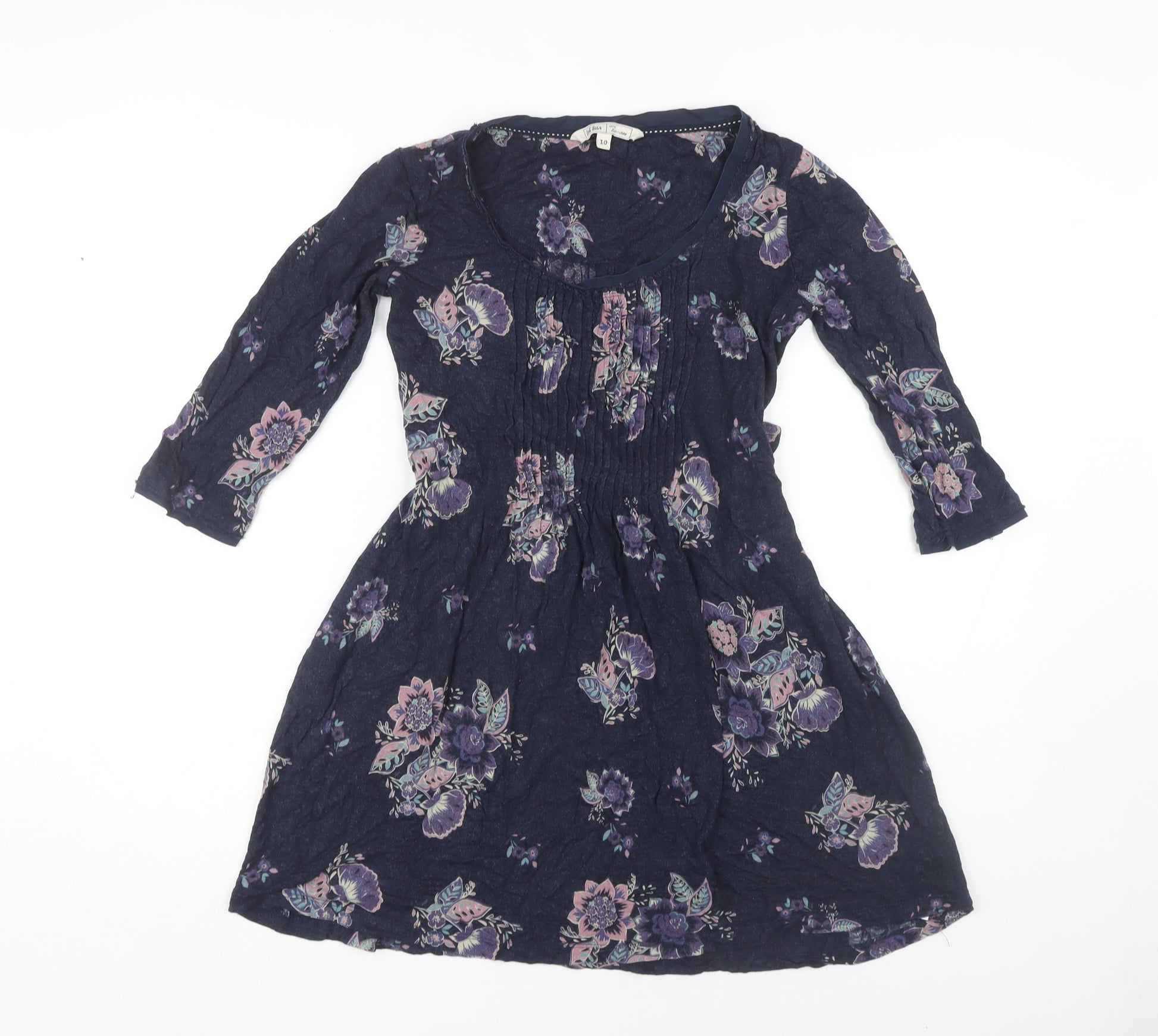 Elevate your everyday style with this charming Fat Face Women's Blue Floral Tunic Blouse, size 10. Crafted from 100% viscose, this blouse offers a soft and breathable feel, perfect for keeping comfortable throughout the day. The delicate floral pattern adds a touch of femininity and charm, making it a versatile choice for a variety of occasions. Designed in a classic tunic style, it flaunts a flattering scoop neckline and 3/4 fitted sleeves, ensuring a graceful fit that accentuates the natural contours of the body. The woven fabric drapes beautifully, enhancing the overall flow and aesthetic of the blouse. A pullover design adds to its casual appeal, while the lovely mix of floral prints makes it suitable for spring and summer seasons. Whether you're headed to a casual outing or an afternoon get-together, this blouse seamlessly blends style and comfort, providing an effortlessly chic appearance. Perfect for pairing with your favourite trousers or skirts, it offers a multitude of styling options to suit your personal taste. Machine washable for easy care, this blouse is a hassle-free choice for busy, fashion-forward individuals. Don't miss the opportunity to add this versatile piece to your wardrobe.