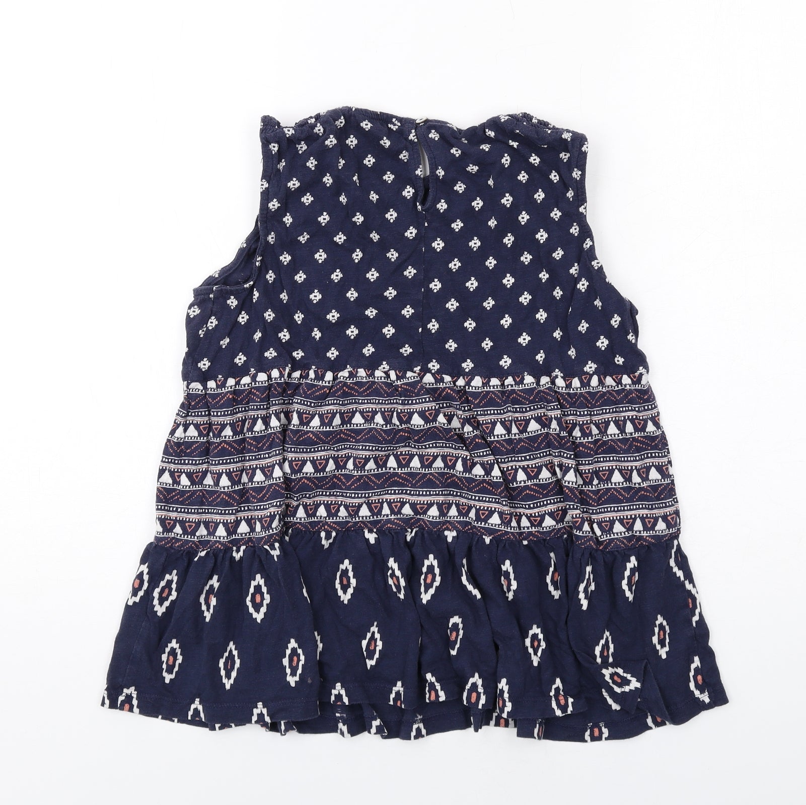 Womens Blue Geometric Cotton Basic Blouse Size 8 Round Neck