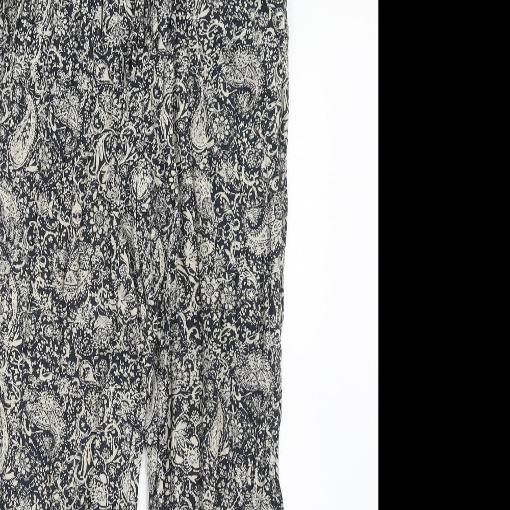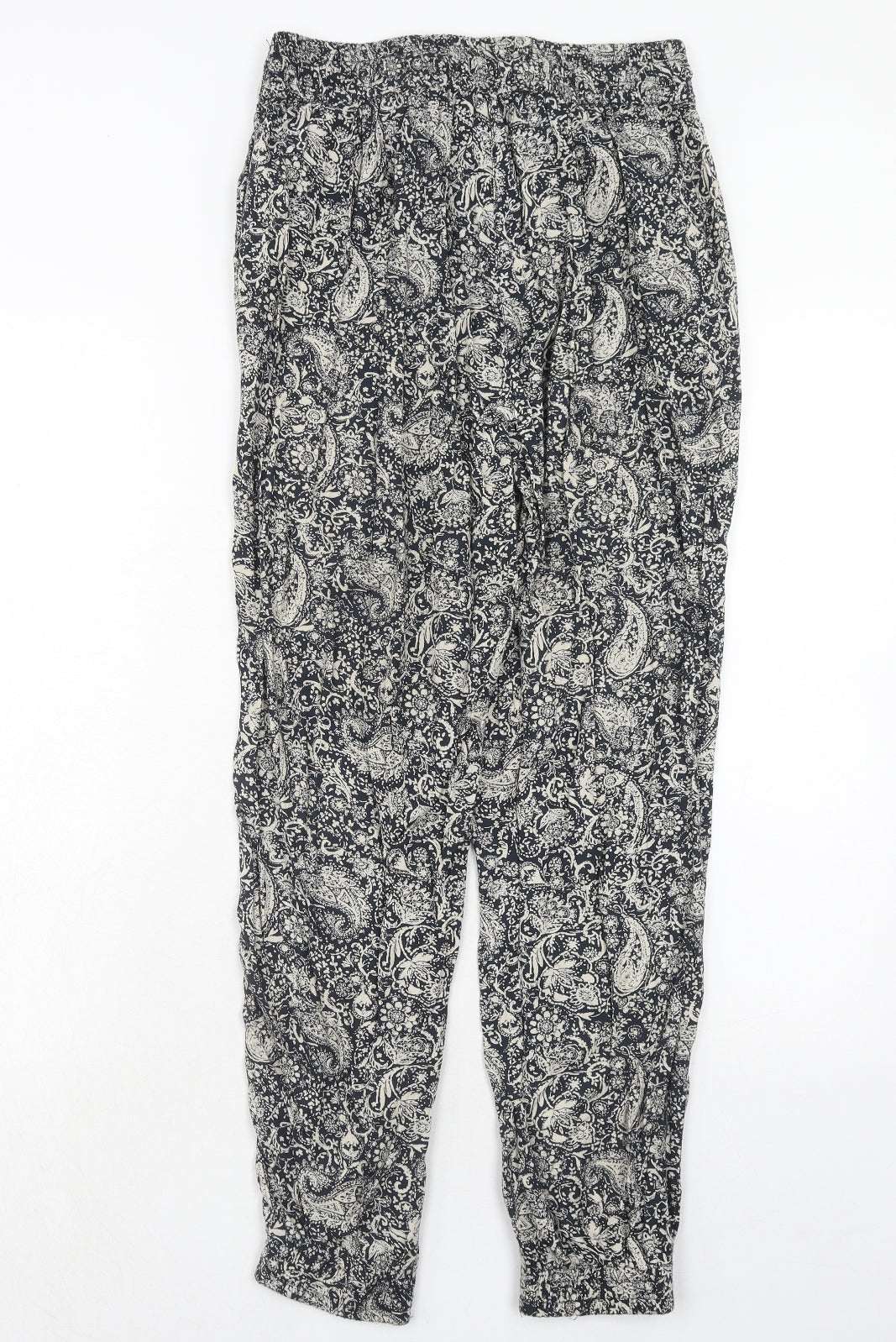 Womens Blue Paisley Viscose Trousers Size 10 Regular Drawstring