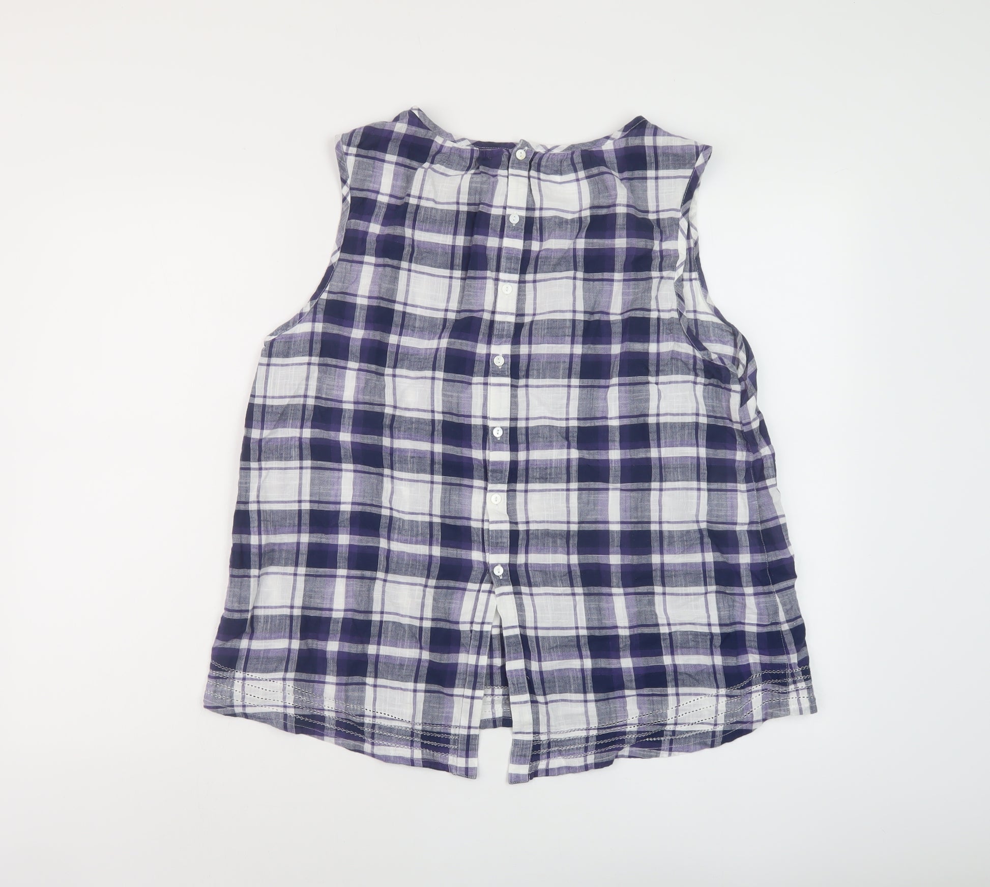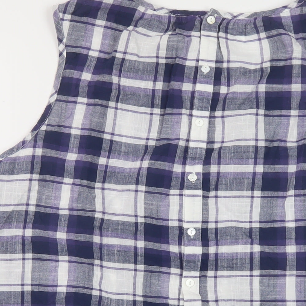 Womens Blue Plaid Cotton Basic T-Shirt Size 16 Round Neck