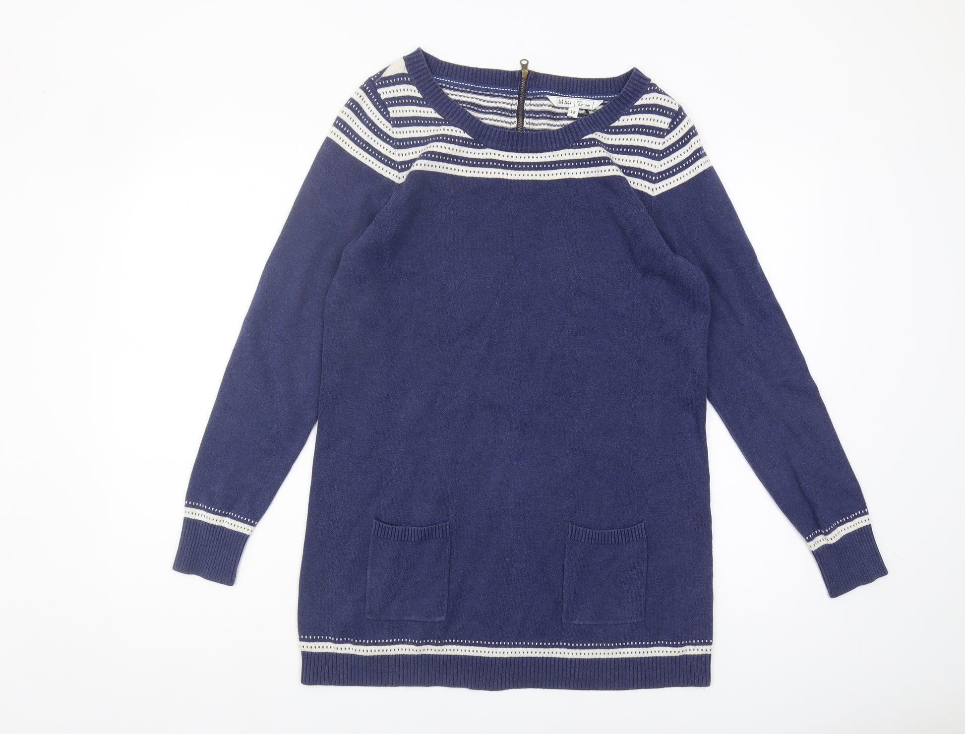 Embrace cosy comfort with this delightful Fat Face Women's Pullover Jumper. Perfect for any casual occasion, this size 12 jumper offers a regular fit, ensuring a relaxed silhouette. Crafted from 100% cotton, it promises unbeatable softness and breathability. The classic blue tone, accentuated by stylish stripes, adds a timeless charm to your wardrobe. Featuring a comfy crew neck and elegant long sleeves, this knit is perfect for layering during the cooler months. With button accents and an open design, it provides a chic detail that every fashionista will appreciate. Machine washable for easy care, this jumper showcases Fat Face's commitment to quality and style. Ideal for women who embrace both comfort and style, this piece will soon become a favourite for laid-back days.