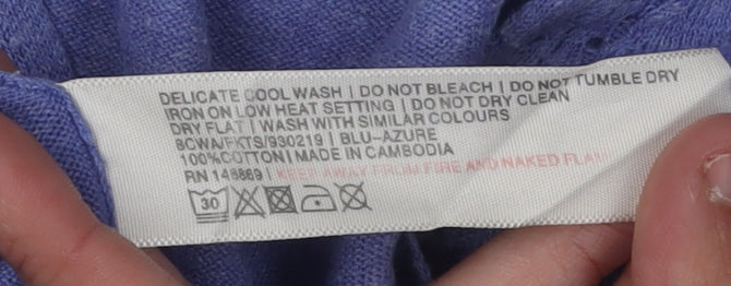 Discover comfort and style with this women's blue pullover jumper from Fat Face. Crafted for casual days, this relaxed-fit jumper is a must-have in your wardrobe. Made from 100% cotton, it promises breathability and ease of care with its machine washable feature. Adorned in a soothing blue tone, this jumper pairs effortlessly with various outfits, making it versatile for both spring and autumn wear.The V-neckline adds a touch of elegance, making it suitable for casual occasions, whether you're heading out for a walk or staying in for a cozy day. Its soft knit fabric and 3/4 length sleeves with tie accents offer a relaxed but stylish look.Although it features a small hole on the front, this piece remains in good condition, ensuring you enjoy a great bargain without compromising style. Ideal for women seeking comfort and subtle elegance, this jumper is a perfect addition to your collection. Don't miss out on this essential, versatile piece from Fat Face.