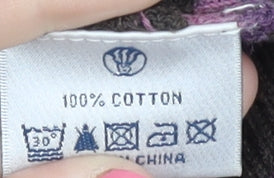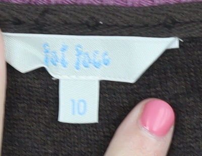 Embrace casual elegance with this Fat Face Women's Brown Striped Pullover Jumper, perfect for adding a touch of colour to your everyday wardrobe. Crafted from 100% cotton, this lightweight and breathable knit top is ideal for layering during the transitional seasons of autumn and spring. The scoop neckline and puff sleeves add a feminine touch, while the fitted waist ensures a flattering silhouette. Designed in a regular fit, this short-sleeve jumper offers a relaxed yet chic style that's perfect for various occasions, from casual outings with friends to laid-back office wear. With its timeless brown colour complemented by purple stripes, this jumper effortlessly pairs with your favourite jeans or skirts for an effortless look. Though gently worn, the jumper remains in excellent condition without visible flaws, ensuring you enjoy its soft comfort and versatile style. Machine washable for easy care, it's a practical addition to any wardrobe in search of stylish functionality.