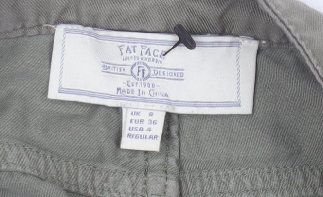 Elevate your casual wardrobe with these stylish green cargo trousers from Fat Face, designed for women in size 8. Constructed from a comfortable blend of 65% lyocell and 35% cotton, these regular-fit trousers are perfect for spring and summer wear. The classic cargo style offers functionality with multiple pockets for all your essentials, making them a practical choice for everyday outings. Featuring a secure button closure and a neutral green shade, these trousers can easily be paired with a variety of tops and shoes to create a versatile look. Their durable construction ensures they remain a staple in your wardrobe for years to come. In excellent condition with minimal signs of wear, these trousers are machine washable, offering easy care and maintenance. Ideal for casual occasions, they provide both comfort and style, allowing you to stay on-trend with ease. Don't miss out on adding these must-have cargo trousers to your fashion repertoire.