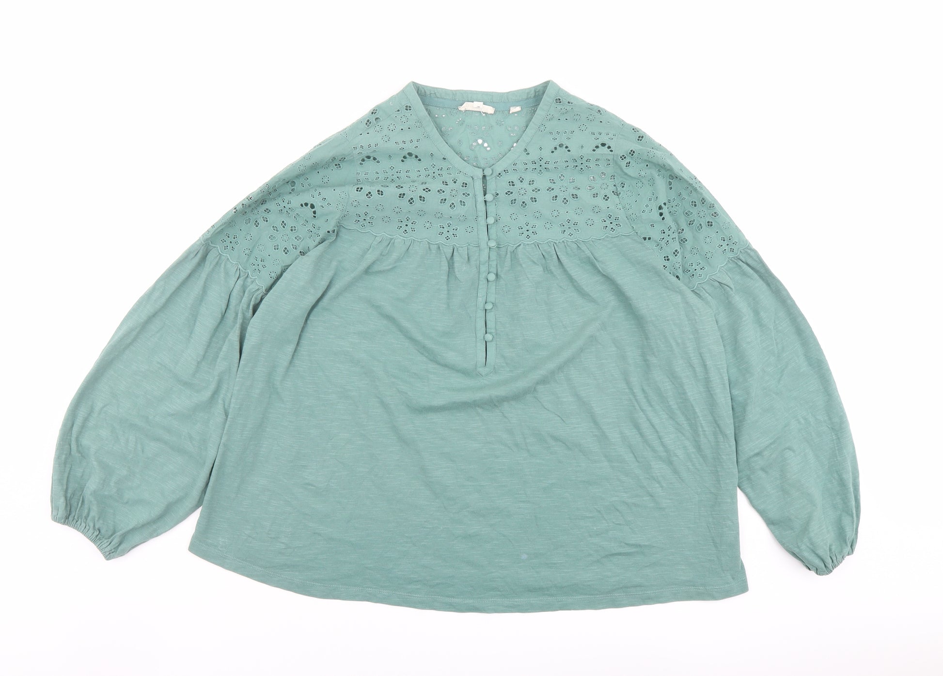 Womens Green Cotton Basic Blouse Size 16 Round Neck
