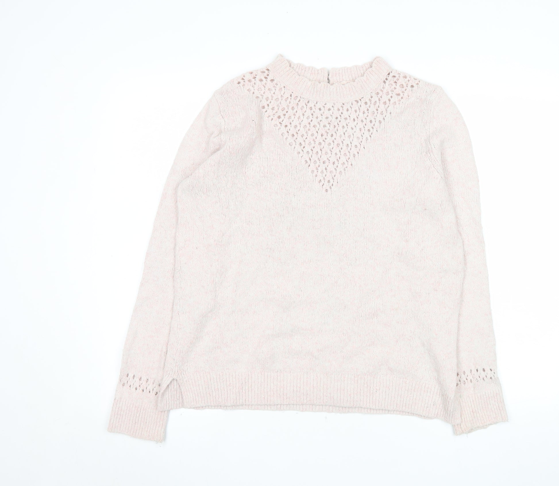 Womens Pink Mock Neck Open Knit Jumper Size 12