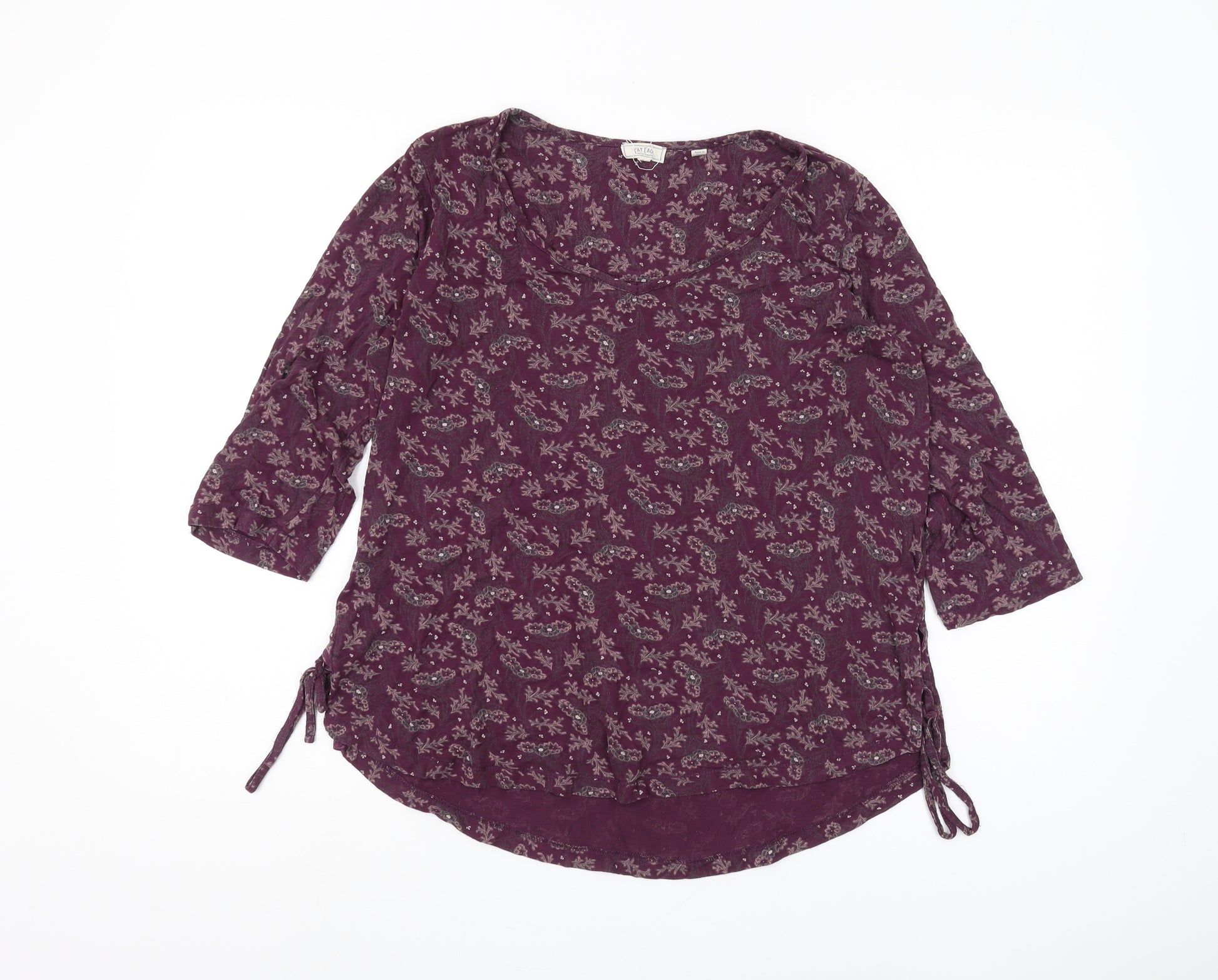 Embrace the charm of casual elegance with this women’s Fat Face tunic blouse. Adorned in a subtle yet captivating purple floral print, it’s perfect for adding a touch of softness to your wardrobe. The regular fit offers comfort without compromising style, paired with a laid-back 3/4 sleeve length that's ideal for any season. Crafted entirely from viscose, the blouse ensures breathability and a gentle drape, making it an essential piece for both daily errands and laid-back social gatherings. The scoop neckline adds a hint of femininity, while its pullover closure ensures effortless wear. Its machine washable feature adds practicality to its allure, making it a convenient choice for busy lifestyles. Ideal for pairing with your favourite jeans or leggings, this tunic effortlessly complements any casual occasion. Experience the subtle sophistication this blouse brings, making it a beloved staple in your collection.
