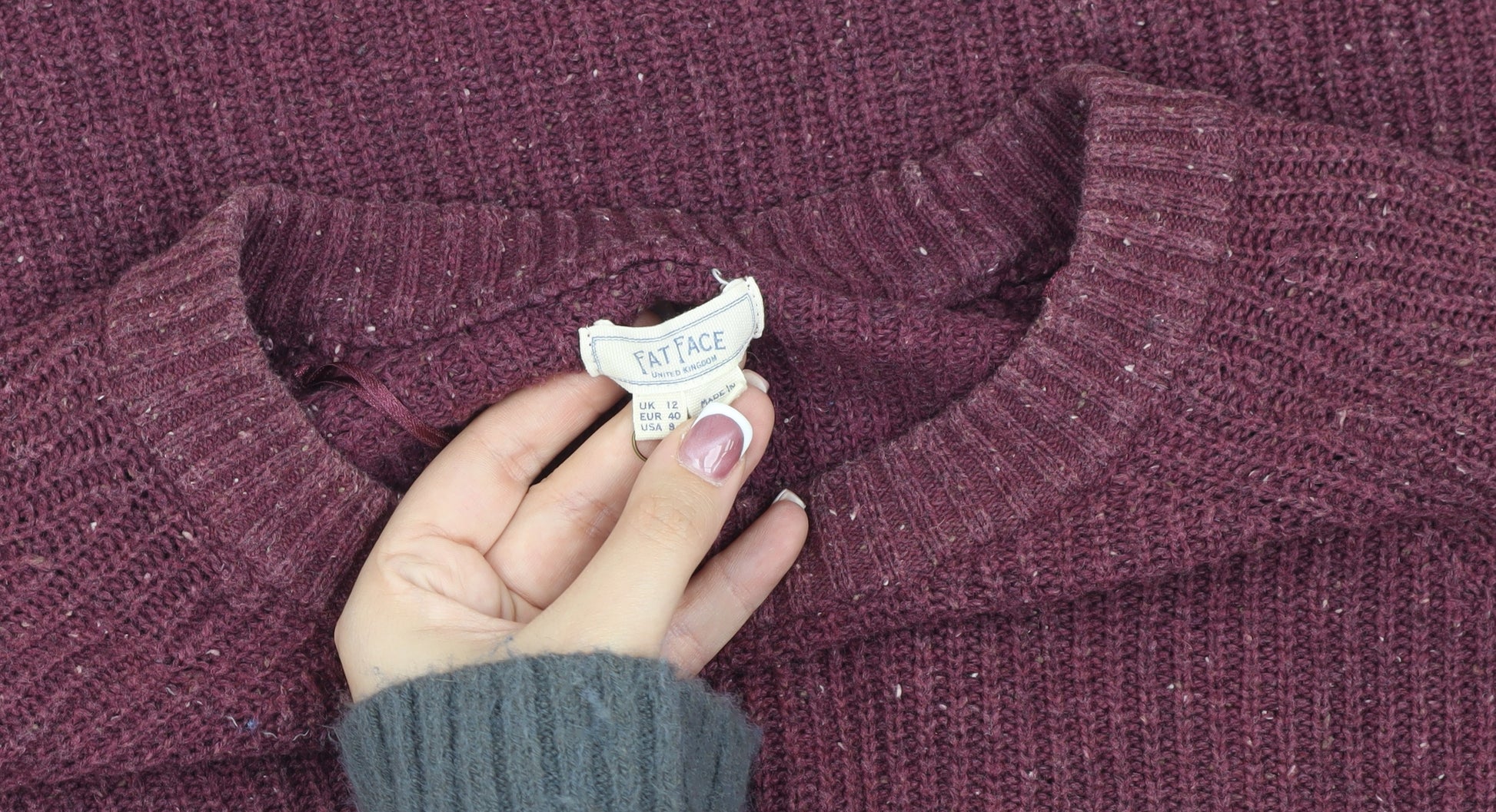 Discover the effortless style and comfort of the Fat Face Women's Pullover Jumper in a beautiful shade of purple. This crew neck jumper is crafted from a luxurious blend of 60% cotton, 29% nylon, and 11% wool, delivering a soft and breathable experience perfect for the cooler months. Designed for a regular fit, it features long raglan sleeves and a ribbed knit style that adds a touch of texture to your casual wardrobe. Ideal for autumn and winter, this versatile jumper is perfect for everyday wear, offering both warmth and style. Although there is slight wear, the jumper is in excellent condition. Embrace casual elegance with this Fat Face essential, designed to keep you comfortable and chic all season long.