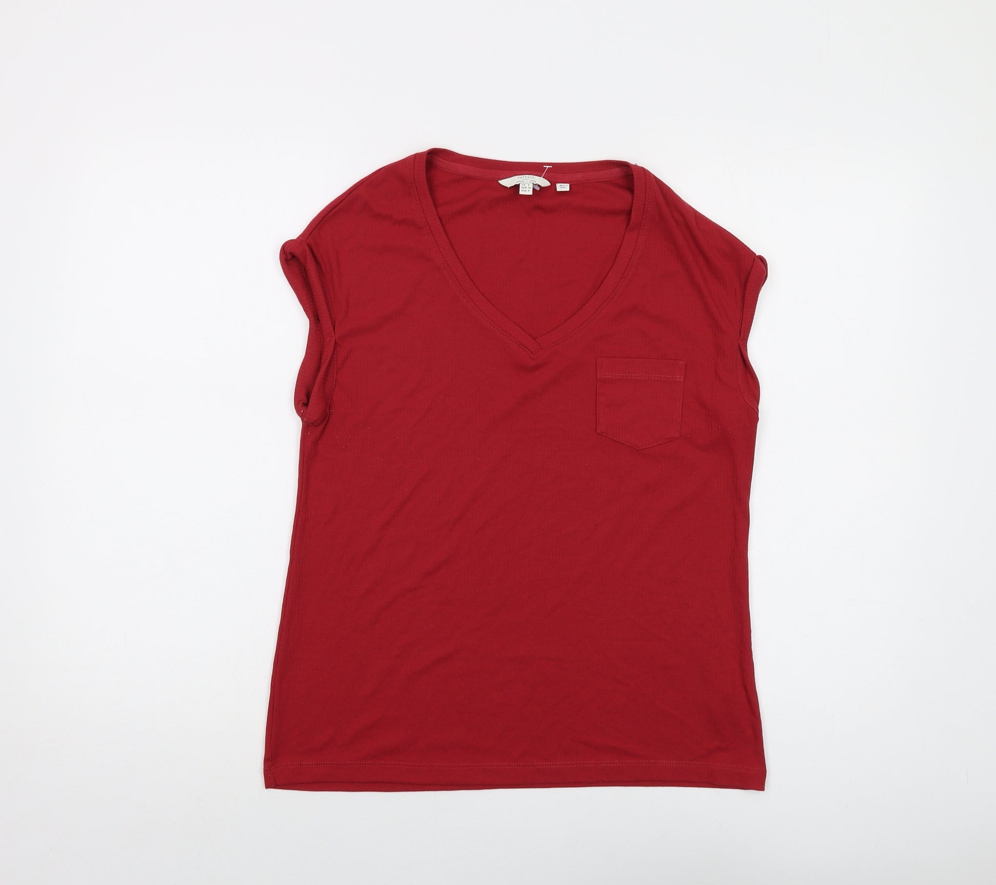 Womens Red Polyester Basic T-Shirt Size 8 V-Neck