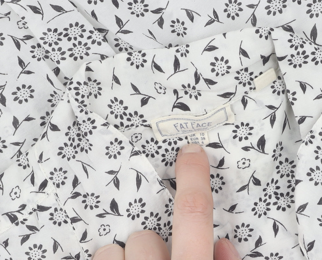 Embrace timeless style and comfort with this elegant Fat Face Women's White Floral Button-Up Shirt. Crafted from soft and breathable viscose, this shirt features a classic collared neckline and a floral pattern that adds a touch of nature-inspired charm to your wardrobe. The lightweight woven fabric makes it perfect for both spring and summer days, offering a cool and comfortable wear. Designed with a regular fit, this button-up shirt provides a relaxed yet flattering silhouette, making it an ideal choice for casual outings or laid-back office days. The 3/4 sleeves offer a chic touch while ensuring easy movement and versatility. This shirt is accented with stylish buttons that complement the overall design, ensuring you stand out in a subtle, sophisticated way. Machine washable for effortless care, this piece comes in excellent condition with no visible wear or stains, ready to be a versatile addition to your collection. Enjoy the perfect blend of classic and contemporary fashion with this must-have shirt from Fat Face, designed to elevate your everyday looks with ease.