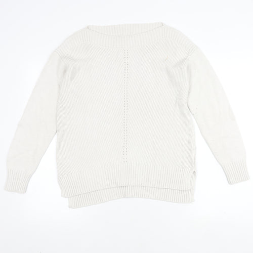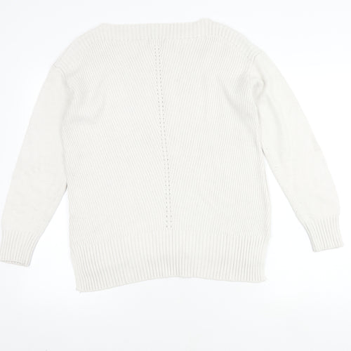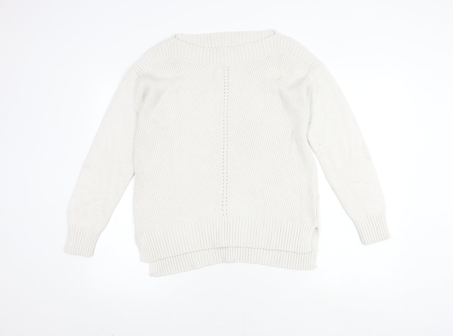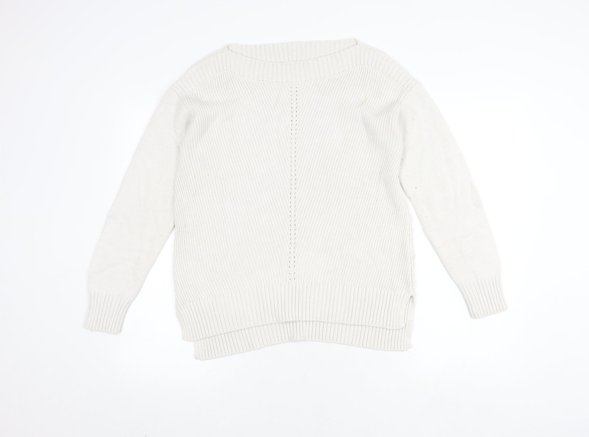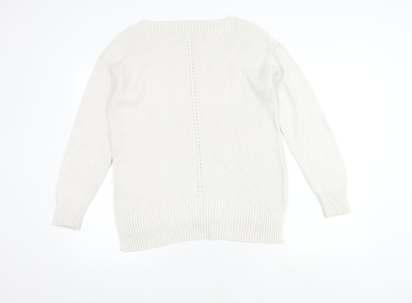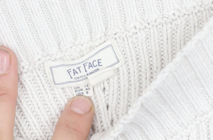 Explore a blend of comfort and style with this Fat Face Women's White Knit Jumper. Perfect for maintaining an effortlessly chic look, this jumper is designed for women in a regular size 12. Crafted from a balanced mix of 50% acrylic and 50% viscose, it ensures a soft and comfortable fit suitable for daily wear. The jumper boasts a classic long sleeve design, ideal for those cooler days when you want a warm yet stylish outfit. The white colour offers versatility, allowing it to pair seamlessly with various outfits, making it an essential staple for your wardrobe. Although in excellent condition, slight wear is visible, adding a touch of character to the piece. This Fat Face jumper, with its knit fabric and refined look, is perfect for casual outings or adding a cozy layer to your business attire. The quality construction ensures longevity and style that doesn't easily fade. Whether you're headed for an afternoon coffee catch-up or a relaxed day at home, this jumper provides the comfort and elegance you seek. Add this to your collection and enjoy a garment that prioritizes timeless style and comfort. Available now at an attractive price, this jumper is a great opportunity to enhance your wardrobe. Don't miss out on this chance to own a piece that combines Fat Face's signature quality with a touch of everyday sophistication.