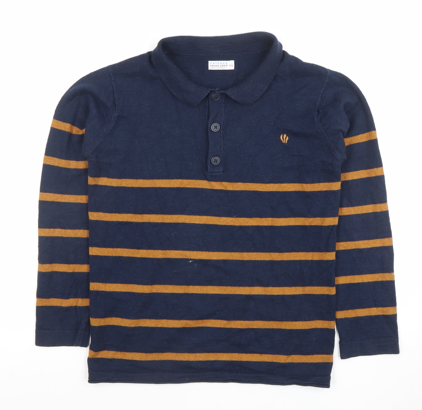 Boys Navy Striped Cotton Henley Jumper 11-12 Years