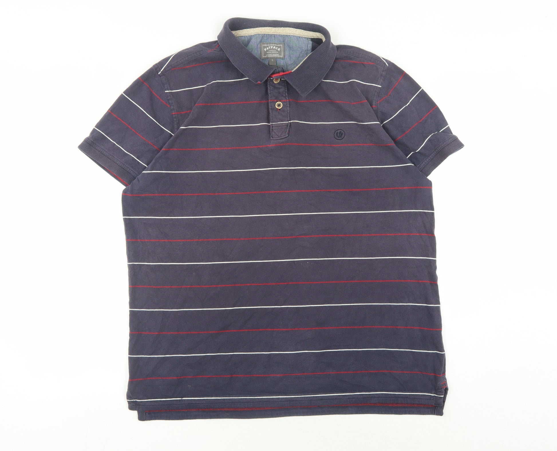 Upgrade your casual wardrobe with this stylish FatFace polo shirt, perfect for any man's collection. Crafted in a rich blue hue with a classic striped pattern, it brings effortless style to your everyday look. Made from 100% cotton, this polo ensures comfort and breathability, keeping you cool and relaxed throughout the day. With short sleeves and a collared neckline, it offers a traditional appeal while the subtle logo accent adds a touch of brand recognition. The shirt closes with buttons, making it easy to wear and adjust according to your preference. This versatile piece is ideal for casual occasions, layering well with your favourite jeans or chinos. Machine washable for easy care, this polo is designed to retain its shape and colour wash after wash. Whether you're heading out for a casual brunch or relaxing at home, this FatFace polo is your go-to choice. With no visible signs of wear, it offers great value for the style-conscious man who appreciates quality and comfort. Don't miss the chance to add this essential piece to your collection and enjoy fashionable ease every day.