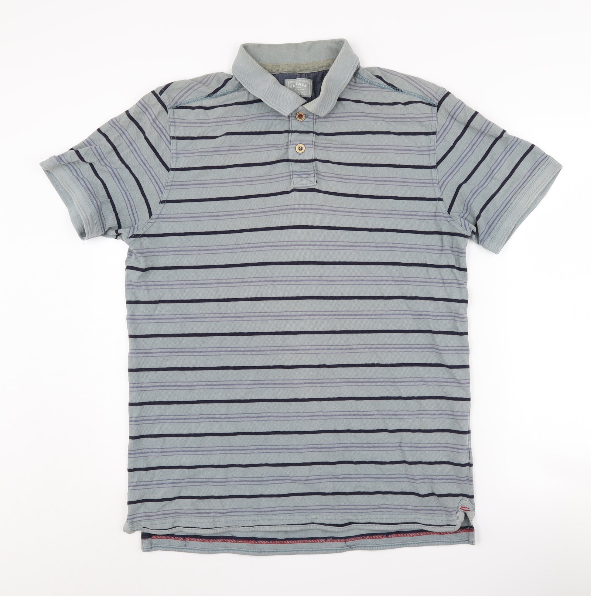 Discover the epitome of casual comfort with this FatFace Men's Polo Shirt. Designed in a versatile blue striped pattern, this polo is a staple addition to any wardrobe. Crafted from 100% cotton, it promises breathability and softness, making it an excellent choice for everyday wear. The short sleeves and collared neckline offer a classic and relaxed fit perfect for laid-back occasions.Ideal for casual outings, this polo delivers both style and comfort. Its machine washable design ensures easy care, making it as convenient as it is fashionable. Whether you're heading to a casual lunch or a weekend getaway, this polo pairs effortlessly with jeans or shorts, offering unmatched versatility.The polo is in excellent condition with minimal signs of wear, reflecting its quality and durability. It is tailored in size L, fitting most men comfortably while retaining its shape after multiple washes. If simplicity paired with understated elegance is what you seek, this FatFace polo shirt is your perfect match.Add this simple yet stylish piece to your collection for a laid-back look that never goes out of style. Embrace the relaxed yet polished aesthetic that only FatFace can offer, and enjoy a shirt that feels as good as it looks.