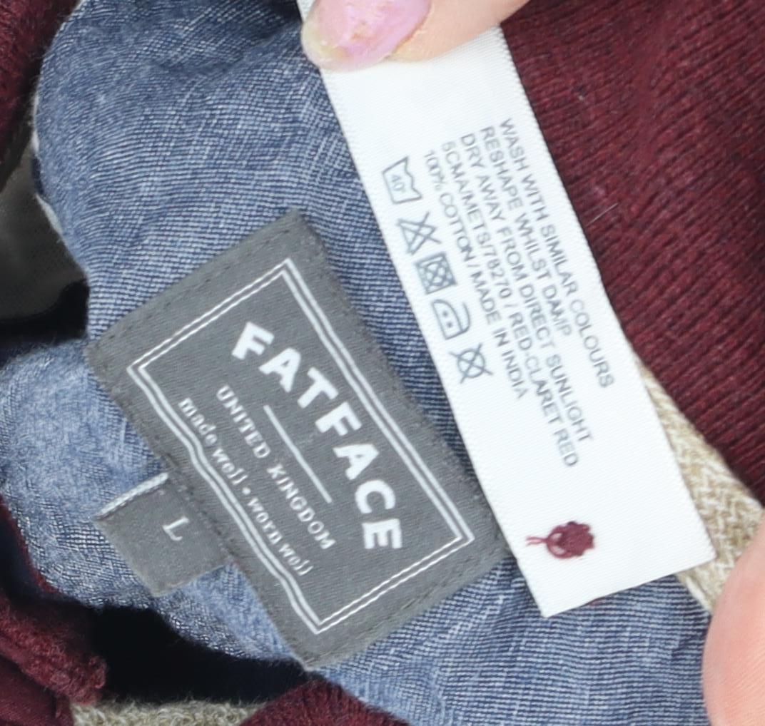 Enhance your wardrobe with this stylish FatFace Men's Polo shirt, a perfect blend of comfort and casual elegance. Crafted from 100% cotton, this jersey fabric polo ensures breathability and all-day comfort. The multicoloured striped pattern adds a dynamic touch to your outfit, making it suitable for a range of casual occasions. This polo features a classic collared neckline with a button closure, adding a subtle touch of sophistication to your look. Whether you're heading for a casual day out or a relaxed weekend gathering, this polo is designed to keep you looking sharp and feeling comfortable. Ideal for the summer season, it pairs effortlessly with jeans or chinos, offering a versatile addition to your men's clothing collection. In excellent condition, this polo is machine washable, ensuring ease of care and maintenance. Elevate your casual ensemble with this charming FatFace polo, and enjoy a timeless piece that seamlessly fits into your modern lifestyle. Add it to your collection today and experience a staple that combines practicality with effortless style.