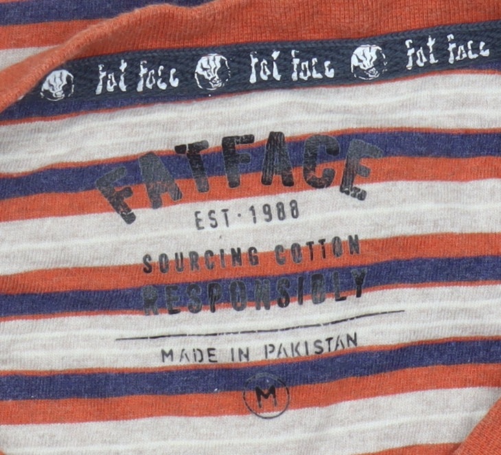 Dive into effortless style with this FatFace Men's Multicoloured Striped T-Shirt in size M. Crafted with 100% responsibly sourced cotton, this T-shirt is both lightweight and comfortable, making it perfect for all-day wear. Its striking multicoloured stripe pattern adds a vibrant touch to your casual wardrobe, while the classic crew neck and short sleeves ensure it stays timelessly stylish. Designed for the modern man, its regular fit flatters without restricting movement. Whether you're heading out for a casual meet-up or just relaxing at home, this versatile T-shirt fits the bill. Showcasing a brand logo accent and made from soft jersey fabric, it's a smart choice for the eco-conscious man. Despite being gently used, it maintains excellent condition, free from any visible damage. Easy to care for, it can be conveniently machine washed, preserving its look and feel through multiple wears. Enhance your wardrobe with this go-to tee, ready to pair with your favourite jeans or shorts for that laid-back look you’ve been searching for.
