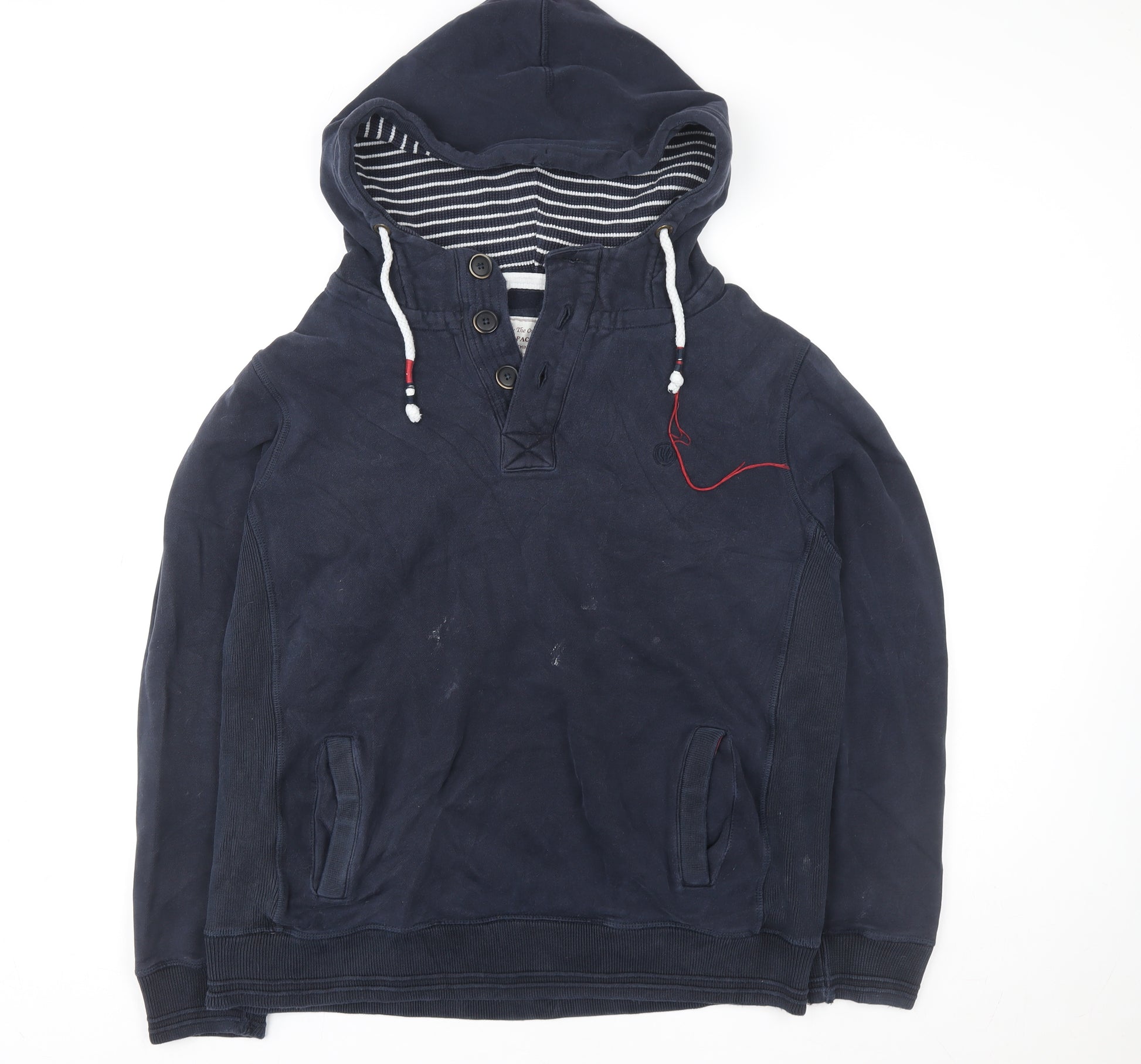 Navy Cotton Henley Hoodie XL Unisex Adults Casual Hooded Sweatshirt
