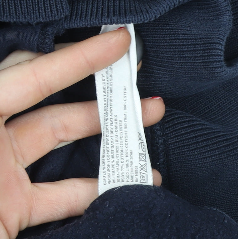 This FatFace navy Henley hoodie offers a comfortable and relaxed style perfect for everyday wear. Expertly crafted from 100% cotton, it provides a soft and breathable feel, ideal for all seasons. Designed in a classic pullover style with a hood, it features a three-button placket and white drawstring detail that adds a casual coastal look, while the striped inner lining of the hood adds a touch of character. The kangaroo-style pockets enhance utility and warmth, making this hoodie both stylish and functional. In a rich navy shade, this hoodie is versatile and easy to pair with jeans or joggers for effortless off-duty outfits. The ribbed cuffs and hem help to retain shape, while the durable cotton fabric ensures long-lasting wear. Branded with subtle FatFace embroidery, it stays true to the brand’s authentic British casualwear appeal. Condition is rated as Good, with some light marks and minor wear consistent with previous use, yet still presents nicely overall. Perfect for casual activities such as walking, travel, or lounging. This Henley hoodie effortlessly combines comfort, practicality, and timeless style, making it an excellent addition to any wardrobe. Whether you’re heading outdoors or relaxing at home, this FatFace hoody promises durable comfort and high-quality craftsmanship synonymous with the brand’s heritage roots. Fashionably understated and highly wearable, it’s an ideal piece for year-round layering and timeless weekend style.