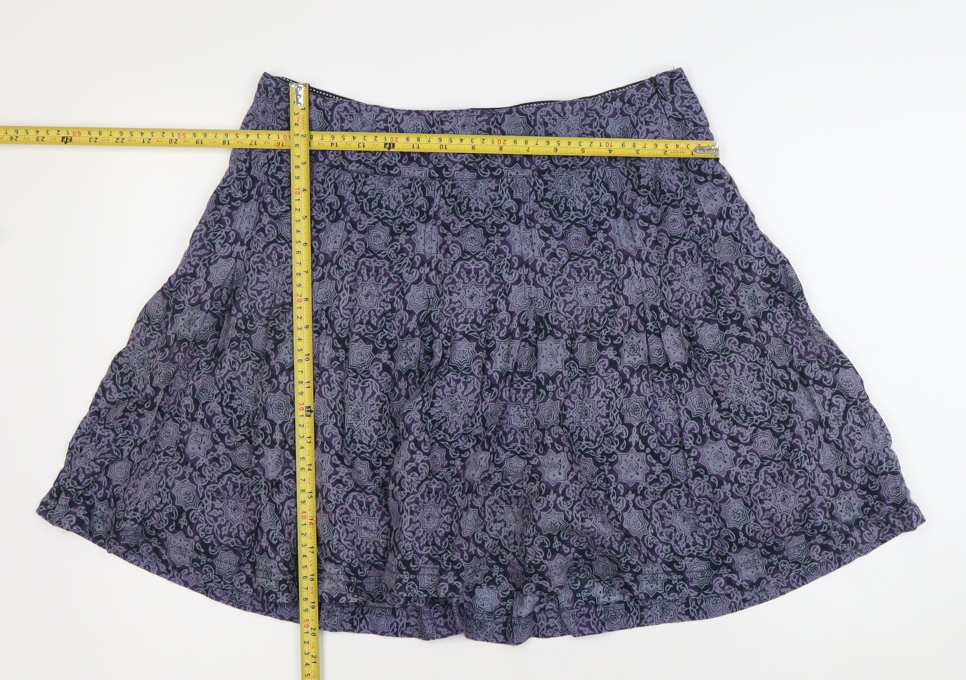 This beautiful FatFace women's A-line skirt in a striking purple geometric print offers a perfect blend of comfort and style. Crafted from a premium blend of 55% viscose and 45% cotton, the skirt is lightweight and breathable, making it an ideal choice for spring, summer, and autumn wear. The semi-sheer chiffon finish with a soft lining ensures both modesty and flow, giving the garment a graceful drape as you move.Designed in a flattering knee-length cut, this skirt is wonderfully versatile, suitable for a range of occasions from casual outings to relaxed workplace settings. The mid-rise waistband provides a comfortable fit that works well with both tucked-in tops and flowing blouses. Featuring a secure zip fastening, this skirt is easy to wear and style, while the intricate geometric pattern adds a distinctive and eye-catching touch to your wardrobe.The purple tones are rich yet soft, allowing you to pair this skirt effortlessly with neutral tones or brighter statement pieces. Whether styled with sandals for a laid-back boho vibe in summer or with ankle boots and a light knit in cooler months, it's destined to become a go-to favourite.In excellent pre-owned condition, this skirt shows only light wear with no visible damage, ensuring you can enjoy it for many seasons to come. FatFace is known for its commitment to quality craftsmanship and relaxed design ethos, bringing timeless British casualwear to your wardrobe.Perfect for women who appreciate style with ease, this A-line skirt offers both comfort and elegance in one package. Buy now to add a unique and versatile piece to your collection that easily transitions between seasons and occasions.