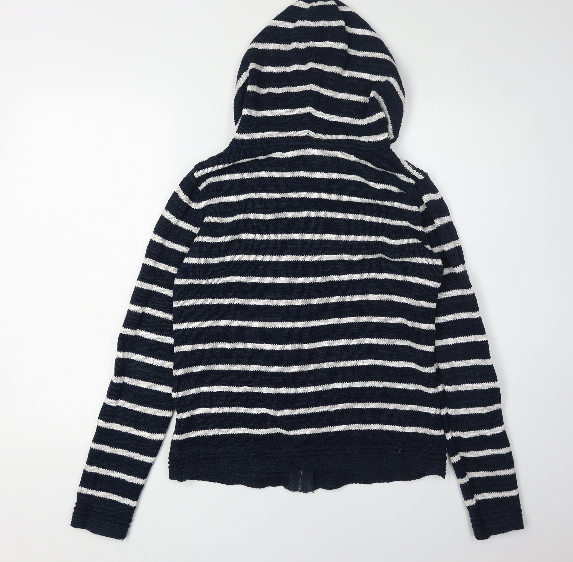 Experience the perfect blend of comfort and style with this Fatface Women’s Cardigan. Designed for casual elegance, this cardigan features a delightful striped pattern in classic blue, guaranteed to complement any wardrobe. Crafted primarily from soft cotton with a touch of nylon, it offers a comfortable, durable fit ideal for all-day wear. Perfect for layering, its hooded feature adds a cozy touch, making it suitable for wear in varied weather. The long sleeves ensure warmth without compromising on style. A versatile addition to any wardrobe, this cardigan pairs beautifully with both jeans and dresses, making it perfect for everyday wear. Despite being pre-owned, this cardigan remains in excellent condition with no noticeable defects, showcasing only gentle signs of use. Elevate your casual style today with this timeless piece from Fatface. Ideal for women seeking comfort and effortless fashion, it’s a must-have for any fashion-forward wardrobe.