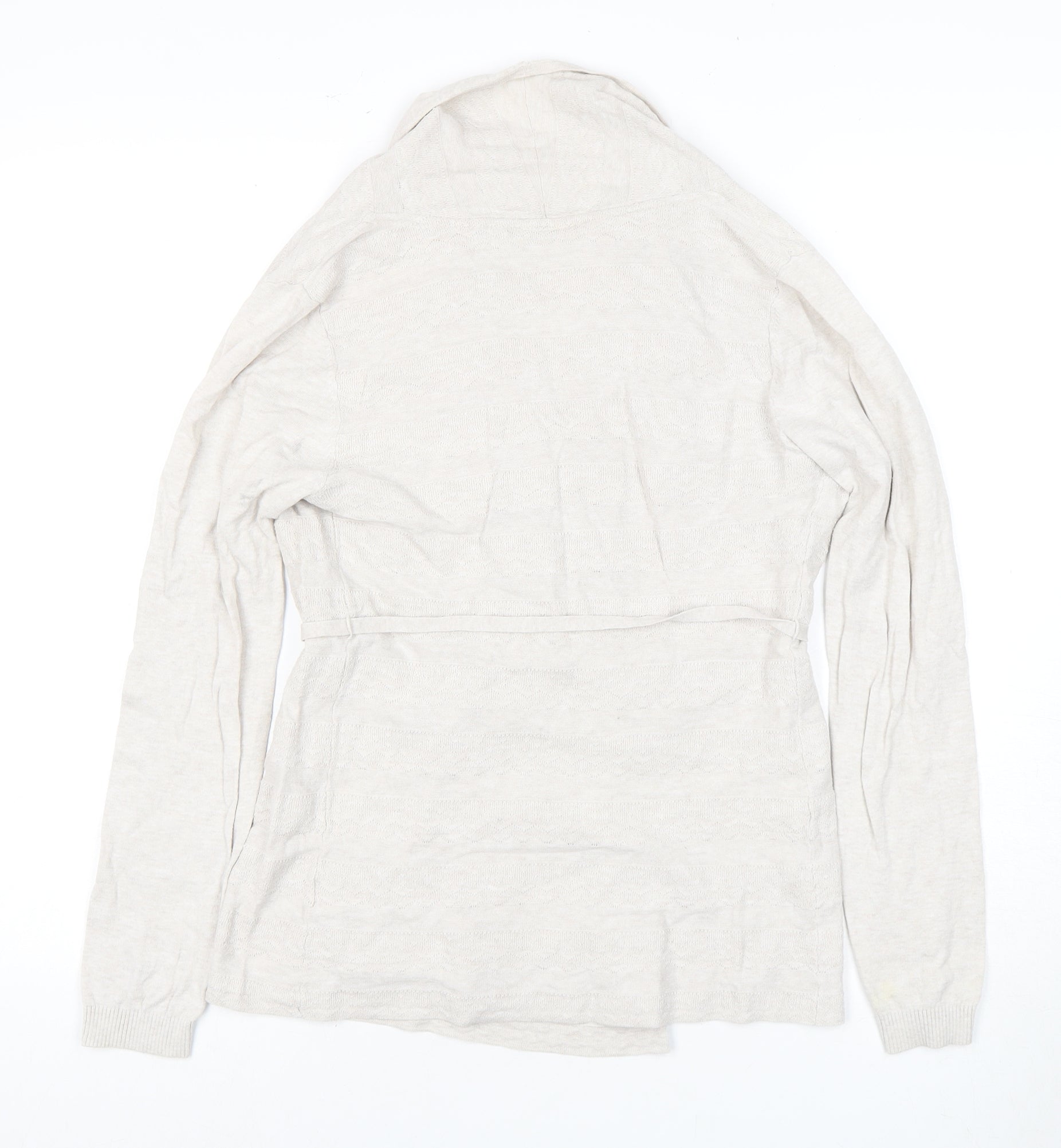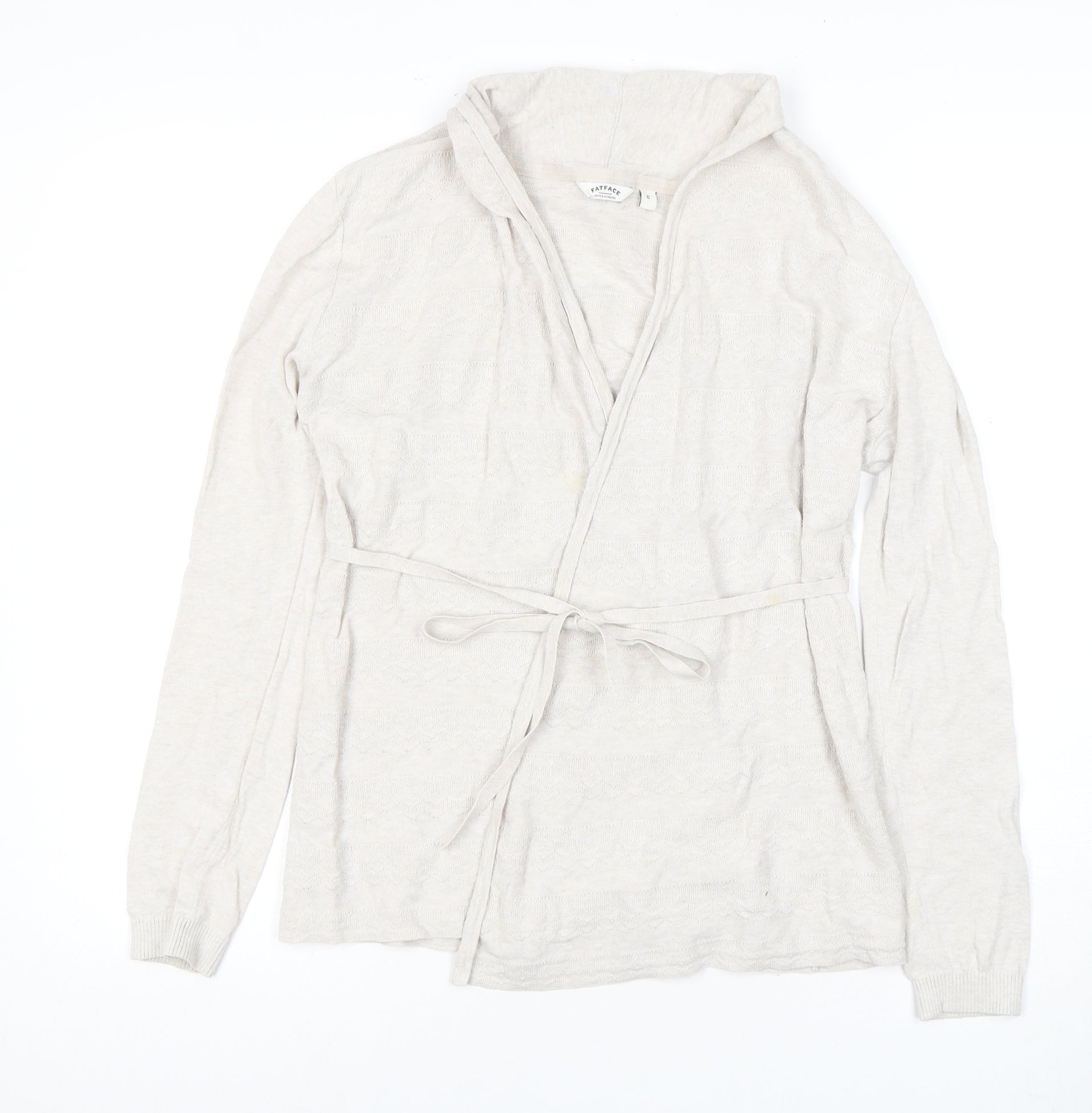 Embrace effortless style and comfort with this FatFace Women's Beige Wrap Jumper. Designed for versatility, this elegant jumper is crafted from 100% cotton, offering softness and breathability that's perfect for layering throughout the year. Its neutral beige tone complements any wardrobe, making it a chic addition for any occasion. The wrap style adds a touch of sophistication, while the knit fabric ensures a cozy feel. Ideal for casual outings or as a light layer for cooler days, this jumper combines practicality with timeless style. Perfectly tailored for women, with long sleeves providing warmth and comfort. Excellent condition, it appears gently worn, ensuring you'll receive a quality piece. Add this staple piece to your collection and discover endless styling opportunities. A must-have for anyone looking to elevate their knitwear game.