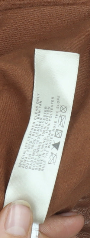 This classic FatFace women's biker jacket in a rich brown leather is a must-have for your wardrobe. Designed with a stylish zip closure and zipped pockets, it's perfect for casual outings. Ideal for autumn and winter, this jacket offers a mix of durability and style. Minor marks on the front add character to this already charming piece. Crafted from premium leather with a lining of cotton and polyester, it promises comfort and long-lasting wear. Don't miss out on adding this versatile and fashionable jacket to your collection. Perfect for casual occasions and ideal for colder seasons, it's a wardrobe staple that pairs beautifully with jeans and boots, offering a chic and timeless look.