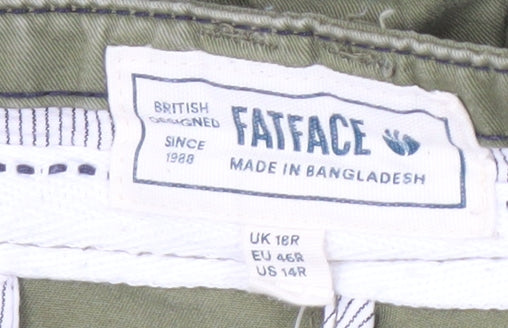 Discover the comfort and style of these FatFace women's green chino trousers. Designed to complement your wardrobe with a versatile solution, these trousers feature a flattering straight-leg fit, perfect for a casual day out. The rich green tone is ideal for pairing with a variety of tops, ensuring you can effortlessly incorporate these chinos into your existing collection. Constructed with a blend of 97% cotton and 3% elastane, they provide a comfortable fit with just the right amount of stretch, ensuring ease of movement and a flattering silhouette. Perfect for spring and summer seasons, these trousers feature functional pockets and a classic button closure, adding both practicality and style to your look. The flat front and regular fit make them suitable for everyday wear, ideal for casual occasions where comfort meets fashion. Despite being pre-loved, these trousers maintain an excellent condition with only minor wrinkling, indicative of gentle use. Embrace the timeless appeal of FatFace with these quality chinos that promise to add charm to any outfit, all the while ensuring comfort and a polished look. Update your wardrobe with these stylish trousers and step out with confidence.