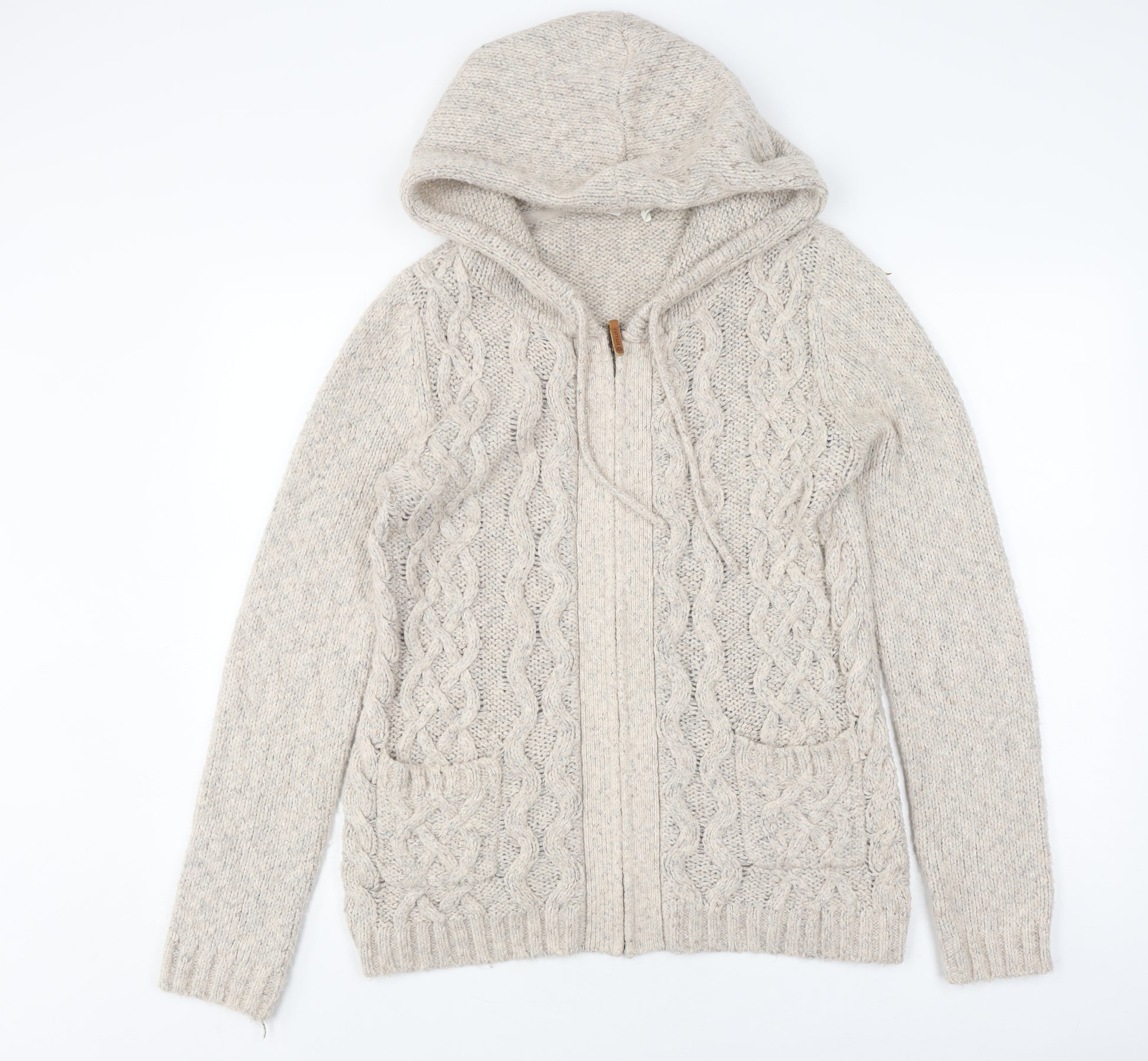 FatFace Women’s Ivory Cable-Knit Full Zip Hooded Jumper Size 12