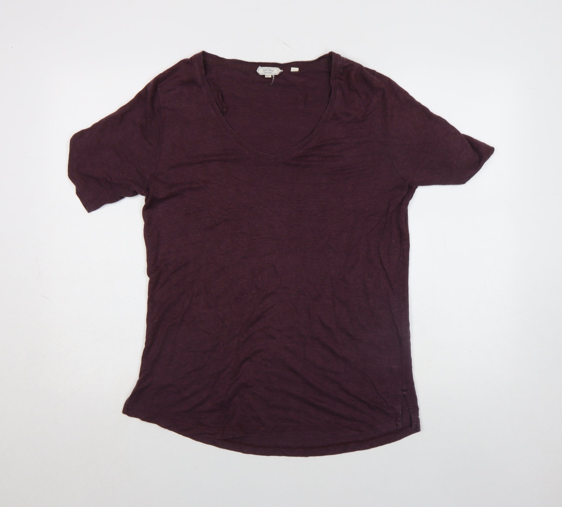 Refresh your casual wardrobe with this lovely FatFace women’s T-shirt in a rich purple hue. Crafted from 100% linen, the natural fibre offers excellent breathability and a lightweight feel, perfect for keeping cool and comfortable during warmer days. The short sleeves and V-neckline lend it a relaxed yet flattering silhouette, while the soft jersey fabric ensures day-long comfort. Designed in the UK and made in Portugal, this top reflects the quality craftsmanship that FatFace is known for. The simple solid colour provides excellent versatility, easily pairing with your favourite denim, linen trousers, or casual skirts. Whether you’re heading to brunch, strolling along the beach, or relaxing at home, this top transitions seamlessly from one activity to another. Its easy-care machine washable properties make it a practical addition to your wardrobe. The Regular fit offers a comfortable drape without feeling oversized, making it suitable for an everyday casual look that still feels effortlessly stylish. The short fitted sleeves and V-neck combine for a flattering shape that enhances comfort and movement. Ideal for spring and summer wear, this top can be layered under light jackets or cardigans for cooler evenings. Simple, stylish, and versatile, this FatFace linen T-shirt captures an understated, timeless look perfect for a range of occasions.