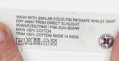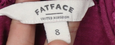 Enhance your wardrobe with this delightful FatFace tunic blouse, perfect for adding a touch of elegance to your everyday style. Crafted from 100% cotton, this blouse promises comfort and breathability for all-day wear. Its rich purple hue adds a burst of colour, making it an eye-catching piece no matter the occasion. The blouse features intricate crochet details along the top, offering a subtle yet beautiful accent that elevates its overall look. Designed with a classic round neckline, it exudes a timeless appeal that's always in fashion. The 3/4 sleeve length makes it versatile enough for both spring and summer, providing just the right amount of coverage while keeping you cool. Ideal for casual outings or laid-back weekends, this tunic is a wardrobe staple. Pair it with your favourite jeans or leggings for a chic, laid-back ensemble. The button closure adds a hint of sophistication while ensuring a secure fit. Despite being used, this blouse remains in excellent condition, ready to complement your style effortlessly. Grab this lovely FatFace tunic blouse to refresh your casual collection today.