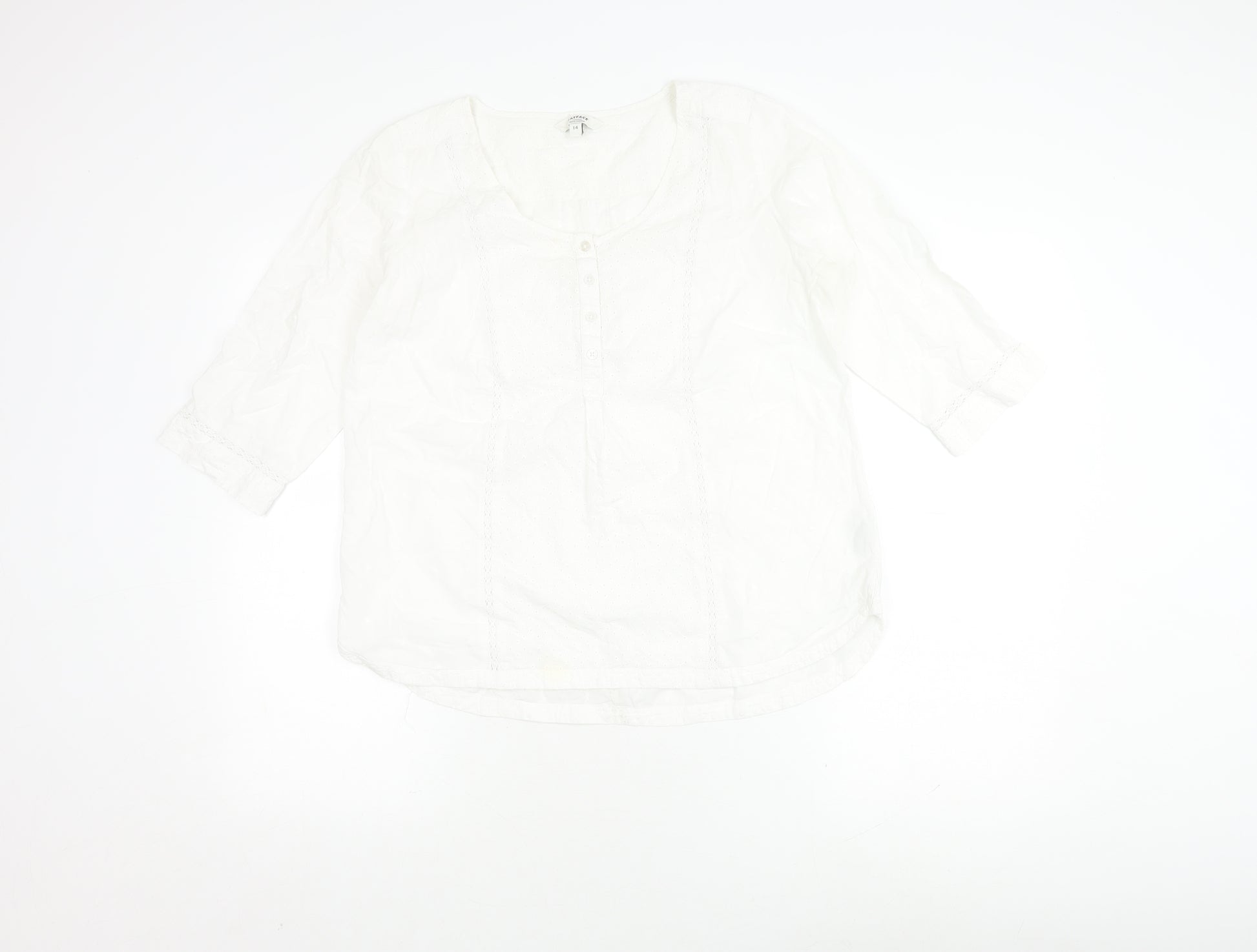 Women's White Cotton Blouse, Size 14, Casual V-Neck