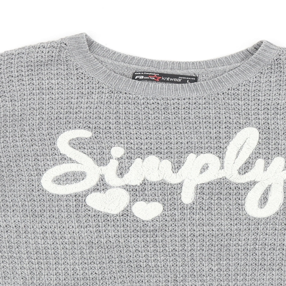Womens Grey Round Neck Acrylic Pullover Jumper Size L - Simply