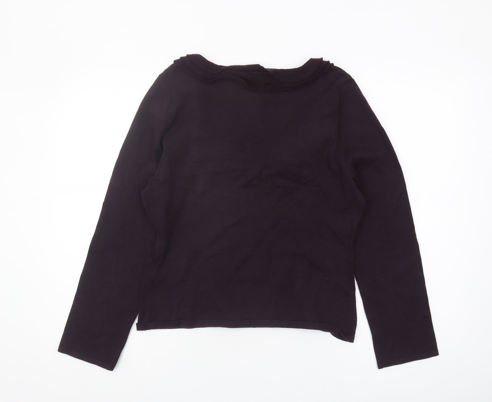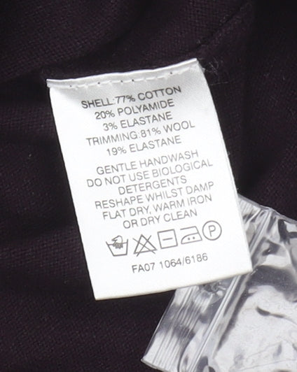 Enhance your wardrobe with this charming Fenn Wright Manson women’s pullover jumper in a striking purple hue. Perfectly suited for everyday casual outings or a cosy evening, this stylish piece is characterised by its elegant scoop neckline and snug long sleeves, ensuring comfort while retaining a sleek sartorial appearance. Crafted from a high-quality blend of 77% cotton, 20% polyamide, and 3% elastane, the knit fabric offers a delightfully soft touch and a tight-knit finish to provide both warmth and breathability during all seasons.This jumper fits seamlessly with a range of fashion styles, offering a regular fit that flatters your figure without compromising on comfort. Ideal for the fashion-forward woman seeking versatile attire options, this piece is made even more desirable by its dependable craftsmanship.Despite being pre-loved, this pullover is in excellent condition with no noticeable signs of wear, making it an attractive addition to your ensemble. The recommended hand wash care ensures longevity, maintaining this wardrobe staple’s quality and allure.Its minimalistic design and lack of pattern provide ample opportunity for layering over colourful shirts or statement necklaces, allowing for both subtlety and flair. Grab this jumper today to add a touch of refinement and endless styling possibilities to your collection.