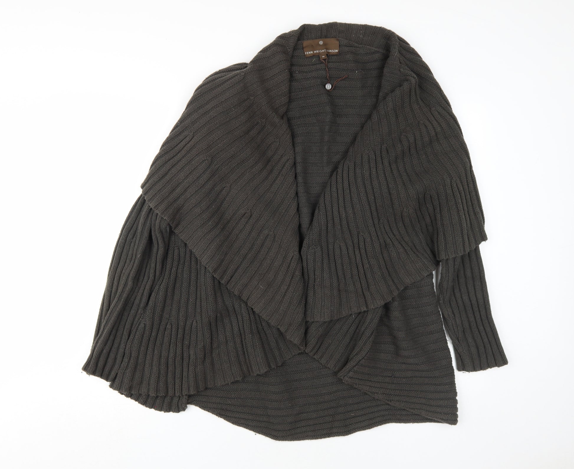 Elevate your wardrobe with this classic Fenn Wright Manson cardigan, perfect for winter layering. In a versatile brown hue, this piece is designed for women who appreciate both comfort and style. Crafted from a luxurious blend of cotton, viscose, polyamide, angora, and cashmere, the cardigan offers a soft touch and a relaxed fit. Its chunky-knit design makes it a cosy choice for chilly days, ensuring you stay warm and chic. Ideal for casual wear, this long-sleeve cardigan suits a variety of occasions, whether you're heading out for a relaxed weekend outing or enjoying a quiet evening at home. The regular size ensures a flattering fit for everyone, and its machine-washable feature provides ease of care. In very good pre-loved condition, this cardigan is an excellent addition to any winter wardrobe, promising warmth and style all season long.
