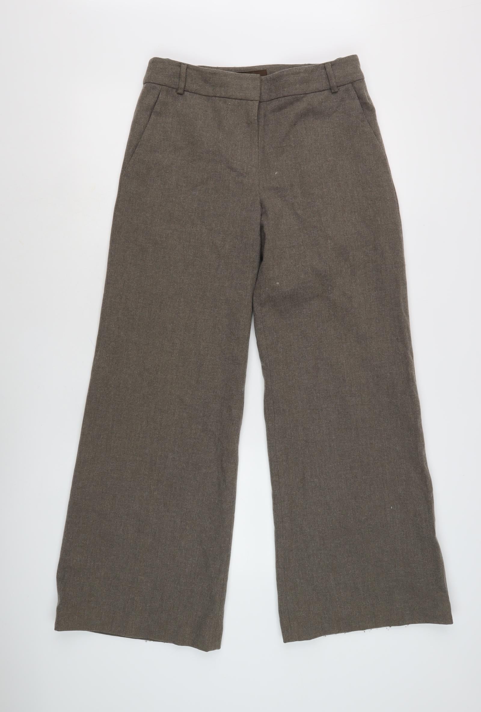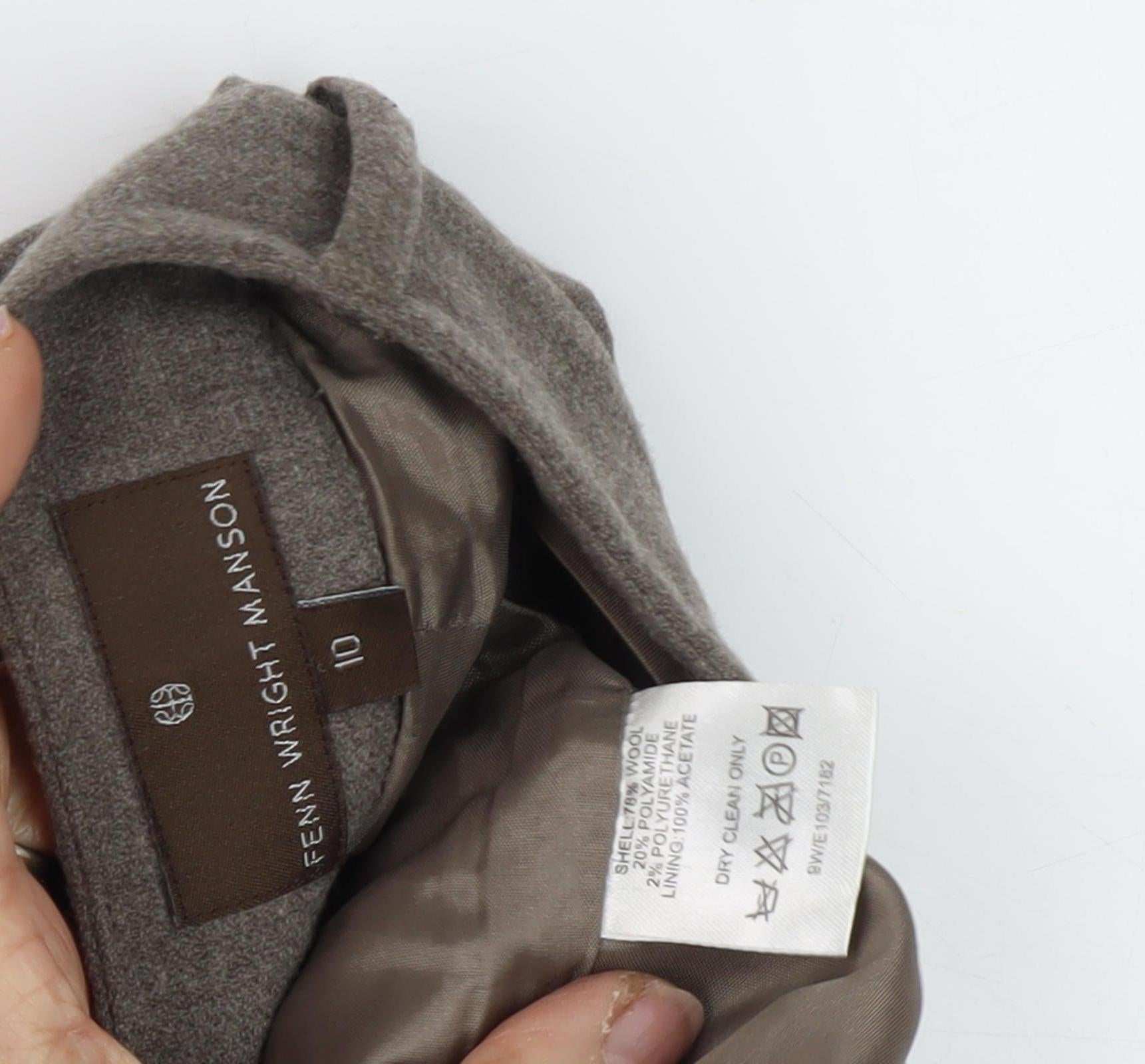 Discover the perfect addition to your wardrobe with these elegant Women's Brown Wide Leg Trousers by Fenn Wright Manson. Crafted from a luxurious blend of 78% Wool, 20% Polyamide, and 2% Polyurethane, these trousers promise both comfort and style. The rich brown hue complements any outfit, making them a versatile choice for your business or casual attire.Designed with a wide-leg style, these trousers offer a flattering silhouette that enhances your figure while providing a relaxed fit for everyday comfort. Ideal for autumn and winter, they bring a touch of sophistication to your wardrobe, perfect for workwear or business occasions.Featuring a flat front with a button accent, these trousers are meticulously tailored for a polished look. Their regular fit and size 10 make them suitable for various body types, presenting a blend of classic and contemporary design. The lack of pattern ensures they can be paired easily with a range of tops and accessories.Maintaining these trousers is straightforward with the dry-clean-only fabric, ensuring they remain crisp and fresh after each wash. Despite being in excellent condition, these trousers exhibit minimal signs of wear, ensuring they are ready to enhance your style.Whether you're heading to the office or attending a formal event, these Fenn Wright Manson trousers are a reliable and chic option, combining functionality with timeless style. Elevate your wardrobe today with these must-have wide-leg trousers, designed to provide both comfort and elegance.