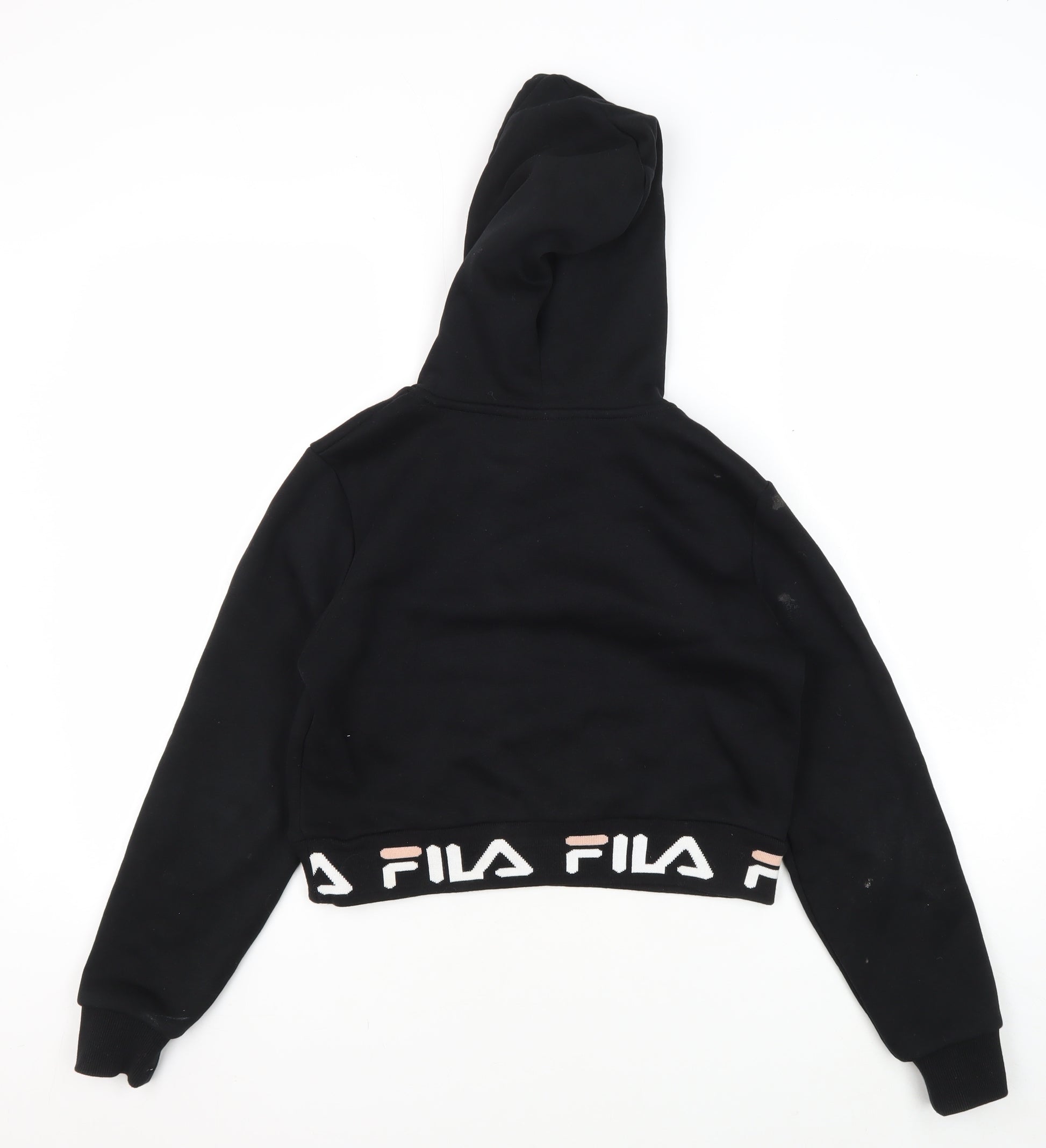 Discover comfort and style with this Fila Girls Black Logo Pullover Hoodie. Perfectly crafted for casual wear, this hoodie offers a cosy fleece fabric blend that feels soft and warm on your skin. The classic black hue with a prominent Fila logo accent makes it a timeless piece that adds a touch of sporty elegance to any outfit. Designed with a practical drawstring hood and long sleeves, this pullover ensures you stay snug and stylish through all seasons. The regular fit provides ample room for movement, making it ideal for everyday activities. Easy to maintain, it's machine washable, ensuring that it stays in great condition with minimal effort. While it bears minor signs of wear and stains, this hoodie remains a fashionable option for those looking to make a subtle fashion statement. Whether you're heading to school, hanging out with friends, or simply enjoying a relaxed day at home, this Fila hoodie is your perfect companion. Embrace the sporty vibe and enjoy the comfort this hoodie brings to your wardrobe.