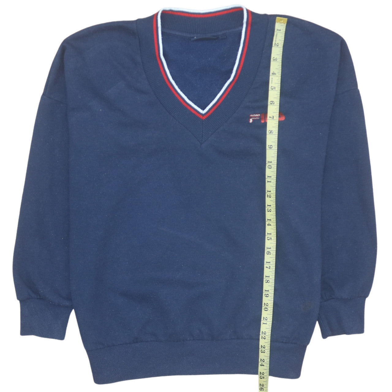 Step up your everyday style with this classic FILA Men’s Blue Pullover V-Neck Sweatshirt in size Medium. Perfect for versatile casual wear, this sweatshirt offers a comfortable fit and timeless athletic appeal. The rich navy blue colour, complemented by red and white rib detailing around the neckline, adds a touch of sporty retro flair that fits effortlessly into any man’s wardrobe. Its understated design features the iconic FILA logo embroidered on the chest, symbolising quality and sporty sophistication. Crafted from a soft yet durable blend of 65% polyester and 35% cotton, the fleece-backed fabric ensures warmth and comfort throughout autumn, winter, and cooler days in spring. The breathable composition allows this piece to be worn comfortably indoors or layered beneath outerwear for extra insulation. Designed with ribbed cuffs and a fitted hem, it holds its shape while offering freedom of movement—ideal for active pursuits or relaxing downtime. The V-neck style delivers a clean, versatile look suitable for pairing with T-shirts, polos, or collared shirts, creating a mix of sporty and smart-casual appeal. Whether worn for a gym session, weekend outing, or casual day out, this FILA sweatshirt brings dependable comfort and a stylish athletic edge. The regular fit ensures easy wear for a range of body types, maintaining a flattering silhouette without feeling restrictive. Machine washable for easy care, this men’s FILA sweatshirt is both practical and stylish. Its excellent condition shows minimal wear with no visible damage, making it a premium addition to your wardrobe at a fraction of retail price. A perfect choice for those seeking a blend of sport-inspired design and comfortable everyday style.