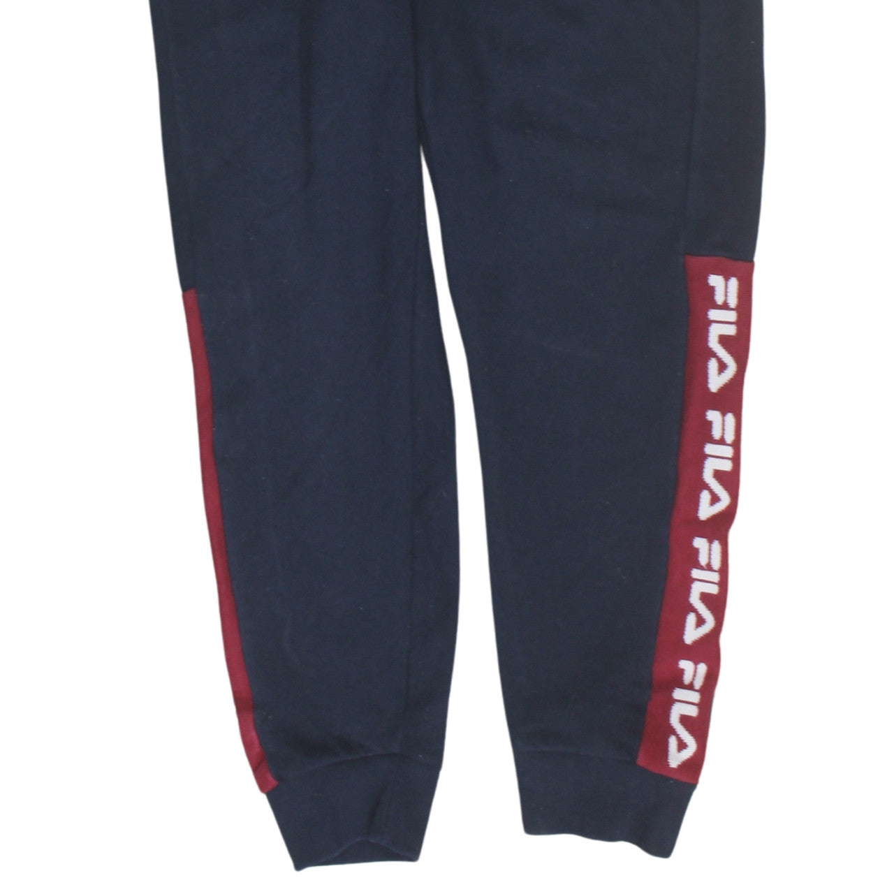 Stay comfortable and stylish in these FILA men’s black jogger sweatpants, crafted for casual wear and light training sessions. Made from a soft cotton and polyester fleece blend, these joggers offer ultimate comfort with a cosy brushed interior. A regular fit and tapered leg design create a modern silhouette that looks great both in and out of the gym. The elastic waistband with adjustable drawstring ensures a comfortable, personalised fit for everyday wear. The trousers feature the iconic FILA logo printed on the thigh and repeated branding on the lower leg side panels in a striking red contrast design. Designed with practicality in mind, they include front pockets for convenience when on the go. Ideal for gym sessions, lounging, or casual streetwear styling, these joggers combine functionality and iconic sportswear aesthetics. The breathable and moderately thick fabric makes them perfect for autumn, spring, and winter seasons. In excellent pre-owned condition with light wear and no visible damage, these FILA joggers are quality pieces made for comfort, style, and performance. Pair them with a matching hoodie or T-shirt for a relaxed sporty look that stands out effortlessly. Whether you're warming up before a run or just taking it easy, these easy-care sweatpants fit seamlessly into your active lifestyle, proving that comfort and style can go hand-in-hand.