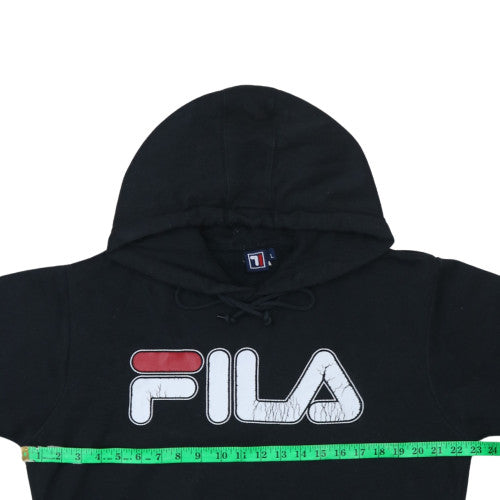 Step out in classic sporty style with this FILA men's black pullover hoodie. Perfect for casual wear, training sessions, or relaxed weekends, this hoodie blends iconic branding with everyday comfort. Crafted from soft fleece fabric with a cosy cotton and polyester blend, it provides lightweight warmth and durability that is ideal for colder seasons such as autumn and winter. The large front FILA logo across the chest adds a bold, retro-inspired accent, while the drawstring hood and front kangaroo pocket provide practical functionality. Designed in a regular fit with long sleeves and ribbed cuffs, this hoodie ensures a comfortable and relaxed silhouette suitable for a wide range of activities including running, walking, or gym wear. The crew neckline offers a classic laid-back look, while the pullover style makes it easy to throw on and go. Although pre-owned, it remains in excellent condition with only minor logo cracking and very light signs of wear. This versatile hoodie is machine washable for easy care, making it a dependable addition to any wardrobe. Ideal for pairing with jeans, joggers, or shorts, this FILA hoodie delivers the perfect balance of vintage streetwear appeal and modern comfort. A must-have piece for fans of the iconic sportswear brand, it’s designed for those who appreciate a timeless athletic aesthetic. Whether worn for layering during outdoor workouts or simply lounging at home, this hoodie is built for performance and casual versatility. Update your wardrobe with this stylish and practical FILA pullover today and enjoy classic comfort in every wear.