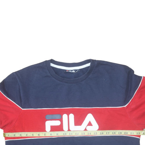 Step into classic sports-inspired comfort with this Fila men's crew neck sweatshirt in blue and red. This pullover design features the instantly recognisable Fila logo in bold across the chest, adding a vivid retro aesthetic that captures the brand’s heritage. Made from a soft cotton and polyester blend, it offers durability and breathability, making it ideal for everyday wear during the cooler months. The fleece fabric ensures a lightweight yet cosy feel, perfect for layering or wearing solo while maintaining a sporty, laid-back look.This regular fit Fila sweatshirt features long sleeves and a crew neckline, providing a timeless silhouette that suits a variety of outfits—from jeans to joggers. The sturdy ribbed cuffs and hem help retain shape and give a neat finish, while the logo detail injects distinct streetwear style. The combination of blue and red colour blocking makes this sweatshirt a standout piece, complementing casual and active wardrobes alike.Designed for all-season wear, its breathable cotton content ensures comfort indoors or outdoors, while the polyester blend helps retain warmth and shape over time. Whether you’re heading to the gym, relaxing at home, or going out for a casual day, this sweatshirt delivers reliable style and practicality. This item is in excellent condition with minimal signs of wear—clean, soft, and ready to impress its next owner.Ideal for those seeking a vintage-inspired sportswear touch with modern comfort, this Fila sweatshirt effortlessly bridges fashion and functionality. Grab this distinctive pullover today and bring authentic athletic flair to your wardrobe.