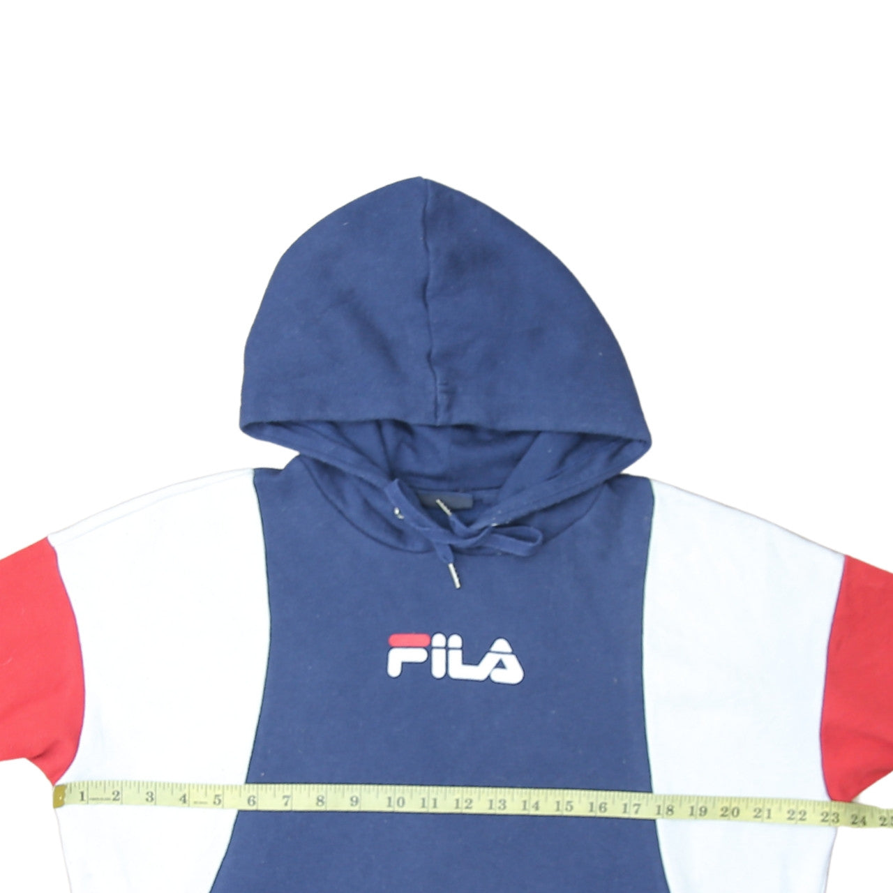 Step out in effortless style with this Fila men's pullover hoodie, designed in a vibrant multicoloured palette of navy, white, and red. Crafted from a comfortable fleece fabric blend of 65% polyester and 35% cotton, it delivers both warmth and breathability — ideal for everyday wear or active pursuits. Featuring the classic Fila logo across the chest, this hoodie brings a sporty and vintage-inspired edge to your wardrobe. The relaxed fit and long sleeves ensure comfort and freedom of movement, while the drawstring hood offers adjustable coverage. The soft fleece interior feels cosy against the skin, making it a great choice for cool autumn and winter days or transitional spring weather. Designed for versatility, this hoodie pairs effortlessly with joggers, jeans, or technical wear for both casual outings and training sessions. Whether you’re heading to the gym, meeting mates, or relaxing at home, it provides the perfect balance of style and practicality. The bold colour blocking and athletic design highlight its strong sporty heritage, while the pullover style keeps it casual and easy to throw on. Machine washable for simple care, it’s built for real-world wear and lasting appeal. In very good pre-loved condition with only light signs of general fabric wear, this hoodie maintains its structure and eye-catching aesthetic. Perfect for fans of retro sportswear and comfort-driven fashion, it’s a must-have staple for any men’s collection seeking an authentic Fila look. Grab this standout piece to add vibrant energy and everyday functionality to your wardrobe today.