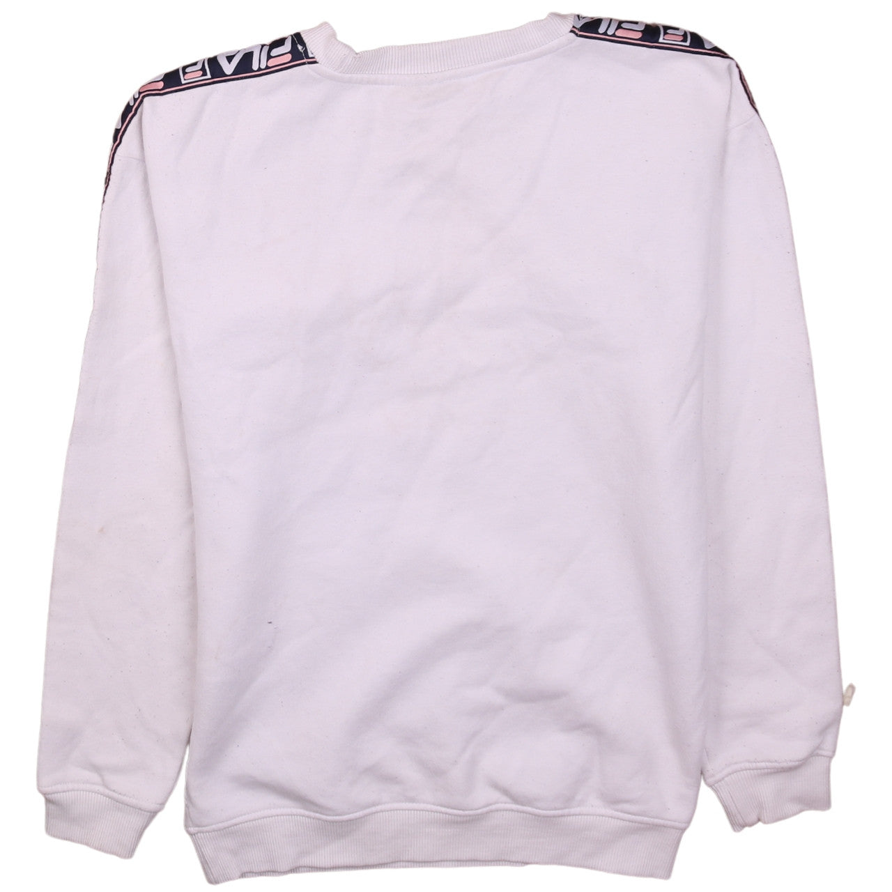 Step up your casual style with this classic Fila Men's White Crew Neck Sweatshirt in size XS. Crafted from a comfortable jersey fabric blend of soft cotton and durable polyester, it offers a breathable and cosy feel perfect for all seasons. The pullover design features long sleeves with ribbed cuffs and hem for a secure fit and added comfort. The iconic Fila logo takes pride of place across the chest and along the sleeves, showcasing the brand’s sporty heritage in bold contrast tones. Designed with a regular fit, this sweatshirt offers effortless layering for everyday wear, whether you're heading to the gym, running errands, or relaxing at home. The crisp white base with navy and pink details makes it versatile enough to pair easily with jeans, joggers, or shorts. In very good preowned condition, it’s well-maintained with light marks near the hem that do not detract from its appeal. Machine washable for practicality, this Fila sweatshirt embodies sporty streetwear comfort with timeless appeal. Ideal for casual outings, workouts, or off-duty lounging, it’s a wardrobe staple that combines modern design, comfort, and classic brand recognition at a great value. Add this Fila sweatshirt to your collection and enjoy enduring style and comfort from one of the most iconic sportswear brands.
