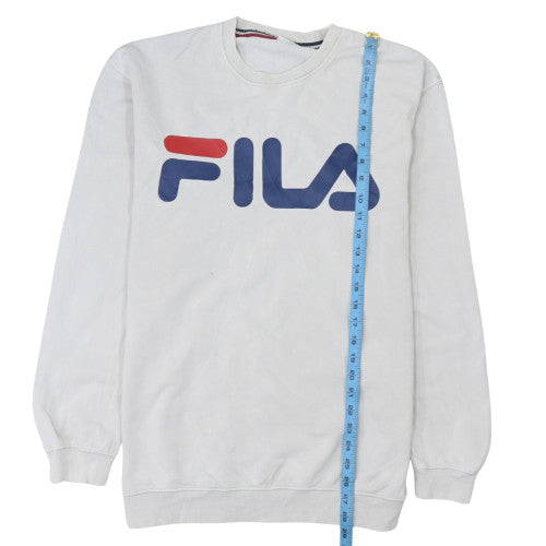 Upgrade your casual wardrobe with this classic FILA Men's White Pullover Sweatshirt in size Large. This sweatshirt showcases the iconic FILA logo across the chest in striking red and blue, giving it a sporty and stylish edge. Crafted from a soft cotton and polyester blend fleece, it ensures a comfortable and breathable fit suitable for all seasons. The crew neck design and long sleeves make it ideal for layering over t-shirts or wearing on its own for a relaxed yet polished look. Designed for regular fit wearers, this pullover sweatshirt features ribbed cuffs and hem for added shape and comfort, making it a perfect pick for day-to-day wear, gym sessions, or outdoor activities. The timeless white tone makes it a versatile piece that pairs effortlessly with jeans, joggers, or shorts for a sporty streetwear vibe. With its durable fabric blend, you can count on it for both comfort and longevity. Although gently used, the sweatshirt remains in very good condition with only minor signs of wear, reflecting careful previous use. FILA’s reputation for athletic and modern design shines through with this piece, offering both heritage and fashionable appeal. This sweatshirt captures the perfect balance between classic athleticwear and contemporary street style, ideal for those who appreciate simplicity with a hint of brand prestige. Enjoy everyday comfort with a quality fleece that maintains its softness and shape wash after wash. A must-have for any fan of FILA or lovers of sporty casual style, this sweatshirt brings effortless versatility and comfort to your collection. Priced affordably for its excellent condition, it’s a smart addition for active or laid-back days alike.