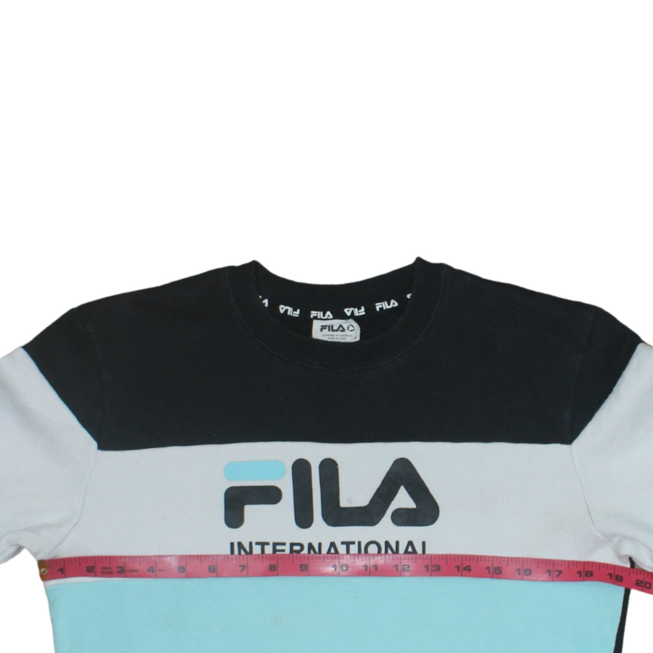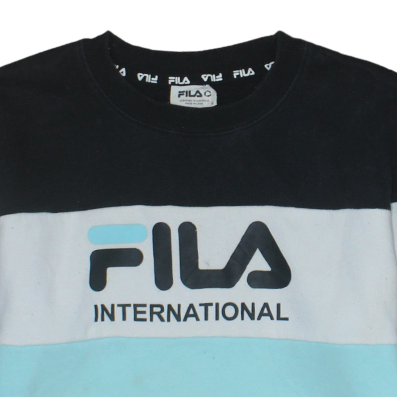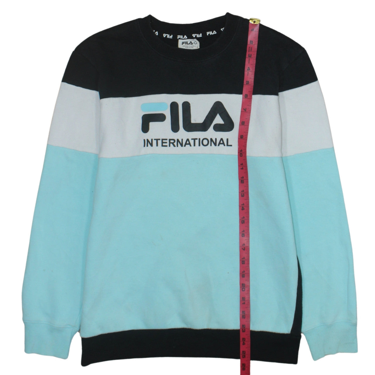 Stay stylish and comfortable with this genuine Fila women's sweatshirt, perfect for layering throughout the cooler months. Designed with Fila's signature sporty aesthetic, this colourblock sweatshirt features a bold Fila International logo across the chest in contrasting tones of black, white, and light blue, creating a modern and eye-catching look. Crafted from a soft cotton and polyester jersey fabric, the sweatshirt offers both breathability and warmth, making it ideal for casual outings, lounging, or light training sessions. The regular fit design provides just the right amount of room for easy movement and a relaxed feel. It has a classic crew neckline and long sleeves finished with ribbed cuffs and hem to retain shape after wear. This pullover style eliminates the fuss of closures, allowing for quick and effortless dressing. While this pre-owned piece remains in overall good condition, it does show some light marking to the lower front and sleeves consistent with gentle wear. Easy to care for, it’s machine washable and perfect for year-round casual wear. Suitable for women who appreciate both comfort and streetwear-inspired style, this sweatshirt pairs beautifully with jeans, joggers, or leggings for a laid-back yet polished look. Whether heading to the gym, running errands, or relaxing at home, this versatile Fila sweatshirt adds a sporty edge to any wardrobe while showcasing iconic brand heritage.