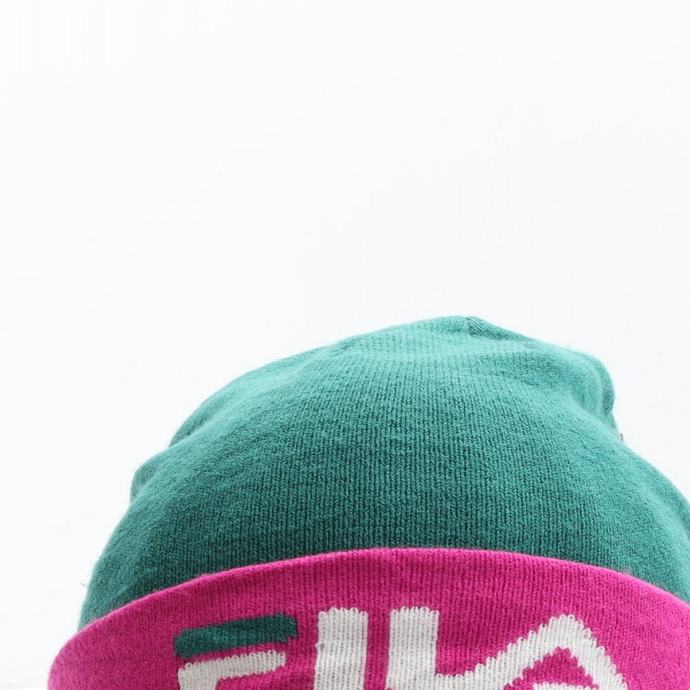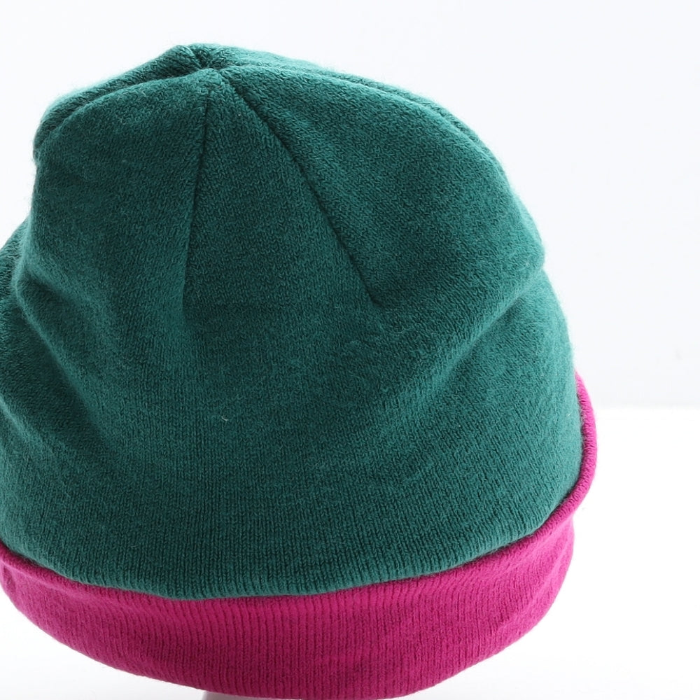 Womens Green Colourblock Acrylic Beanie One Size