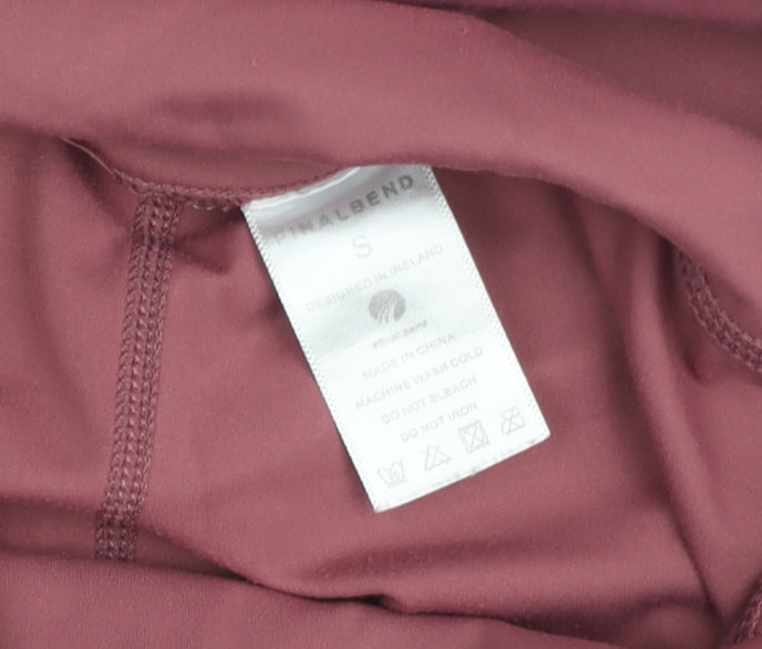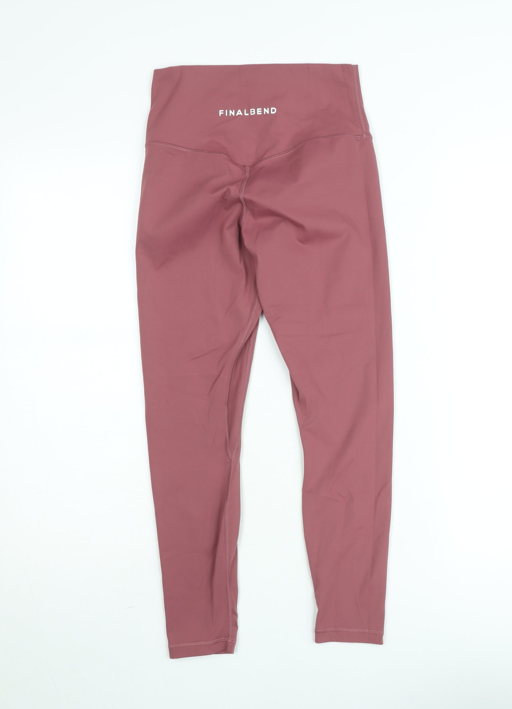 Step into comfort and style with these Final Bend women’s pink high rise ankle leggings in size small. Designed in Ireland, these leggings combine a flattering fit with superior stretch, making them ideal for gym sessions, yoga, or everyday activewear. Made from a soft, flexible polyester and elastane blend, they provide freedom of movement and a supportive fit that holds its shape wear after wear. The high-rise waistband smooths and supports while enhancing your silhouette, ensuring confidence whether you’re training or lounging. The leggings feature an elasticated waist for comfort and flexibility, with a smooth seamless look that flatters all body types. The breathable fabric helps draw away moisture, keeping you cool and dry during workouts or on the go. Finished with a small branded logo on the thigh and across the back waistband, these leggings blend sporty detail with understated elegance. The ankle length cut gives a clean, athletic appearance that pairs well with trainers and gym tops alike. With their simple, no-pattern finish and deep pink tone, these leggings are versatile enough for both performance and casual wear. Ideal for transitional seasons like spring and autumn, they also layer easily under long tops or jackets. In excellent pre-owned condition, these Final Bend leggings have been gently worn and carefully maintained, ready to offer a new lease of life to your active wardrobe. Perfect for yoga, gym workouts, running, or simply running errands in comfort and style. Pair with a sports bra or oversized hoodie for a complete athleisure look that’s as practical as it is fashionable. Don’t miss the chance to own a premium-quality piece designed for women who value performance, comfort, and contemporary design.