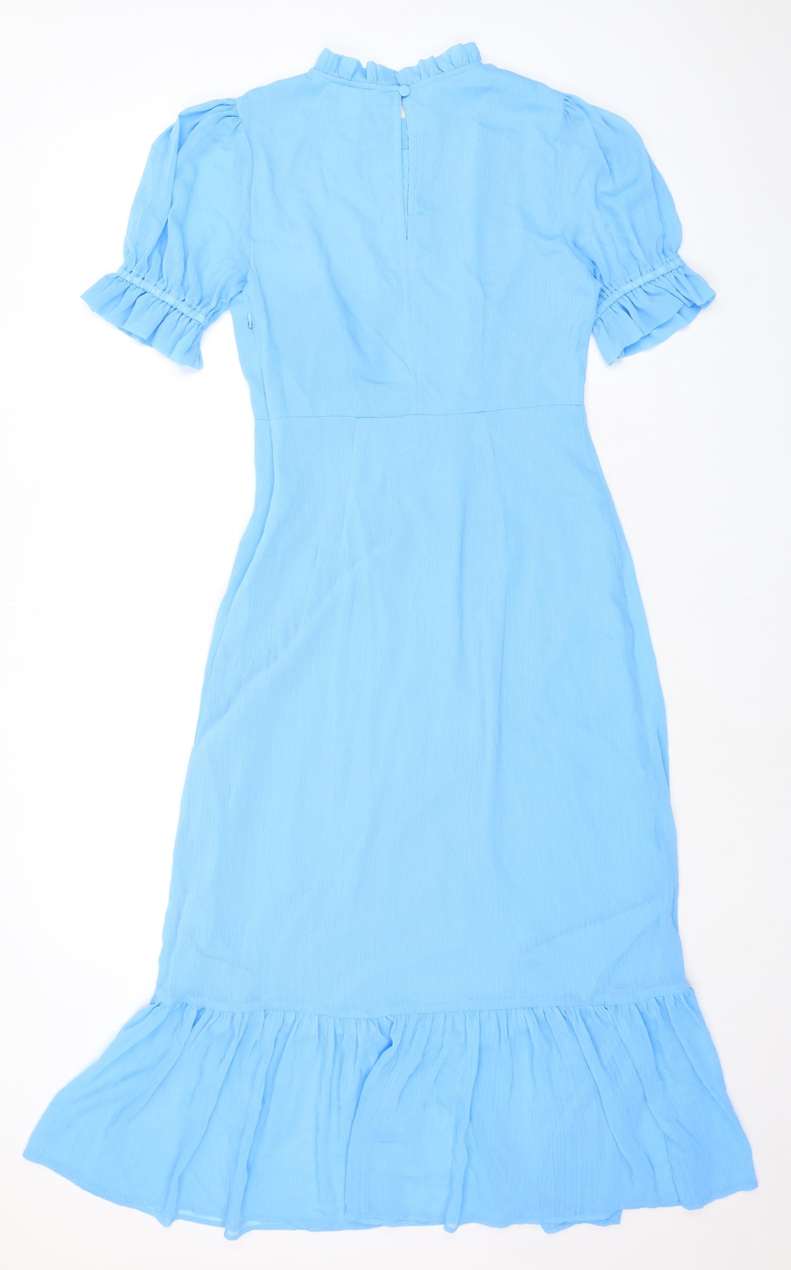 Quiz Womens Blue Floral Polyester Wrap Dress Size 10 V-Neck Zip