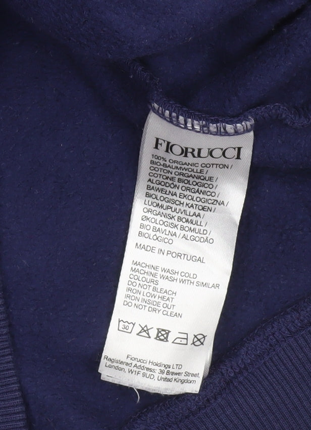 Upgrade your casual wardrobe with this premium men's Fiorucci hoodie, designed for everyday comfort and laid-back style. Crafted in Portugal from 100% organic cotton, this pullover hoodie offers exceptional softness and breathability, ensuring a perfect balance of durability and comfort. Presented in a rich navy blue hue, its timeless look is elevated by the iconic Fiorucci angel logo embroidered on the chest — a nod to the label's heritage and contemporary streetwear appeal. Featuring a classic fit with long sleeves, ribbed cuffs, and a ribbed hem, this hoodie creates a flattering silhouette suitable for any relaxed occasion. The adjustable drawstring hood and front kangaroo pocket provide both functional and stylish touches, perfect for keeping your essentials close or simply staying cosy. Made from midweight fleece fabric, it’s ideal for layering through autumn, winter, and spring, whether you're heading out for a casual weekend or lounging at home. The organic cotton fabric ensures premium quality and eco-friendly credentials, offering lasting wear and softness after every wash. The overall condition is very good, showing only minor signs of light wear on one sleeve cuff, with no stains or major flaws. This Fiorucci hoodie effortlessly combines classic design with urban edge, making it a versatile addition to any modern wardrobe. Pair it with jeans and trainers for an easy off-duty look, or layer it under a denim jacket for cool-weather fashion. With its blend of iconic branding, quality craftsmanship, and comfort-driven design, this hoodie is a must-have piece for those who appreciate stylish, sustainable wardrobe staples.